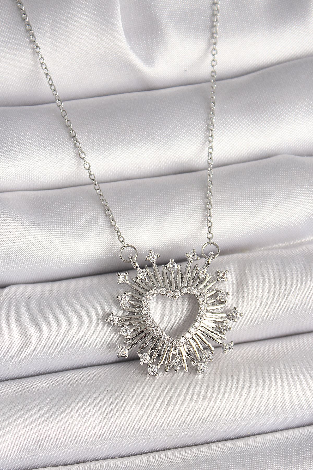 316L Çelik Gümüş Renk Zirkon Taşlı Kalp Model Kadın Kolye - TJ-BKO9919
