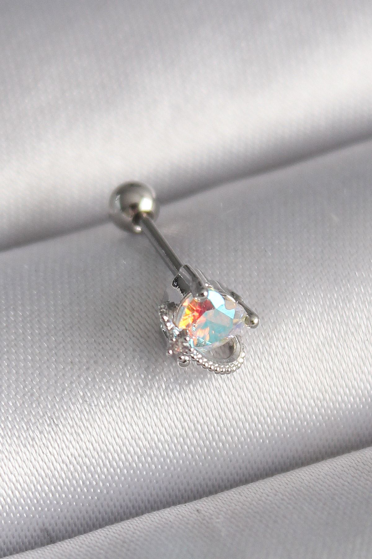 316L Çelik Gümüş Renk Zirkon Taşlı Kalp Tragus Piercing - TJ-PR1243