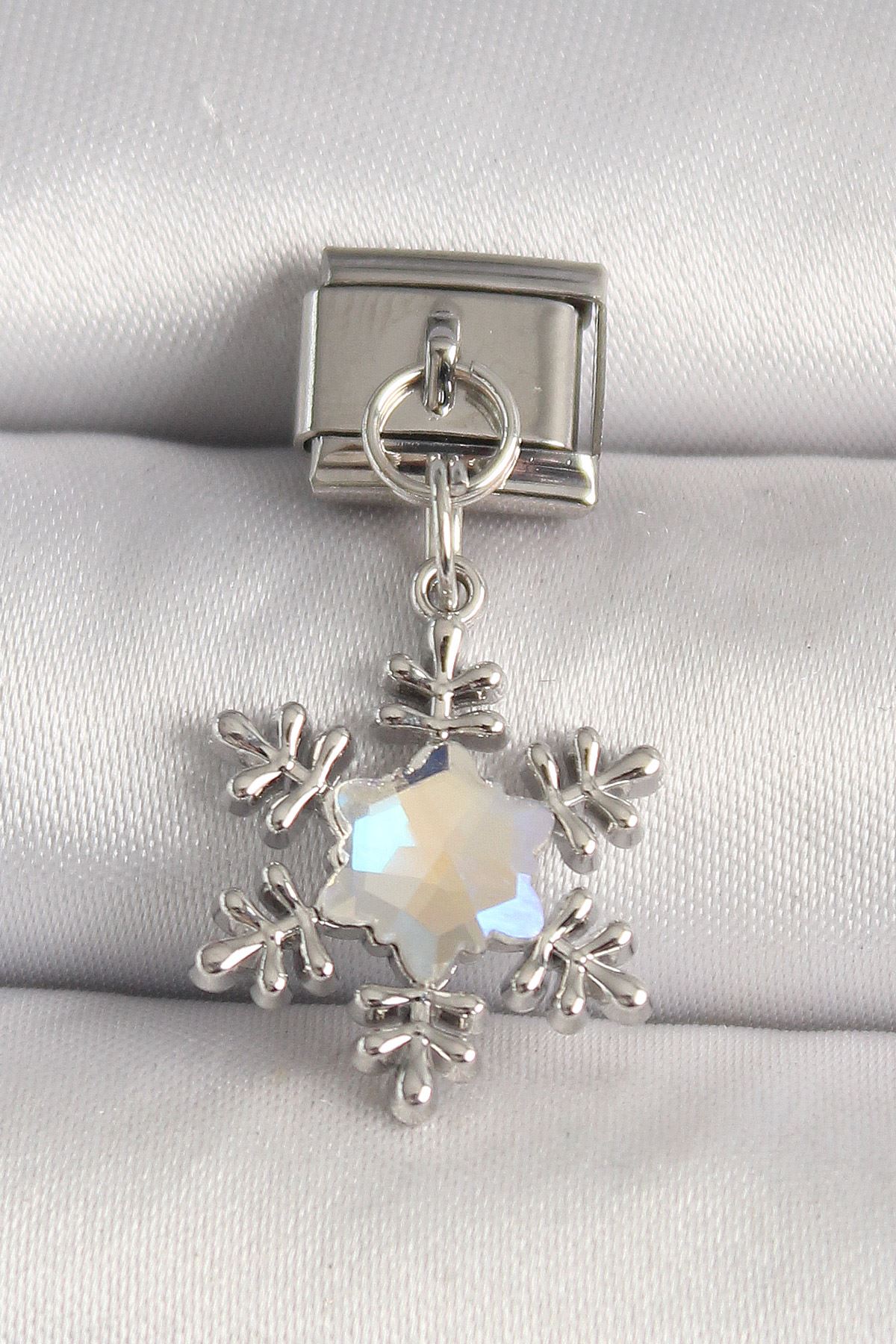316L Çelik Gümüş Renk Zirkon Taşlı Kar Tanesi Model Nomination Charm - TJ-BC1271