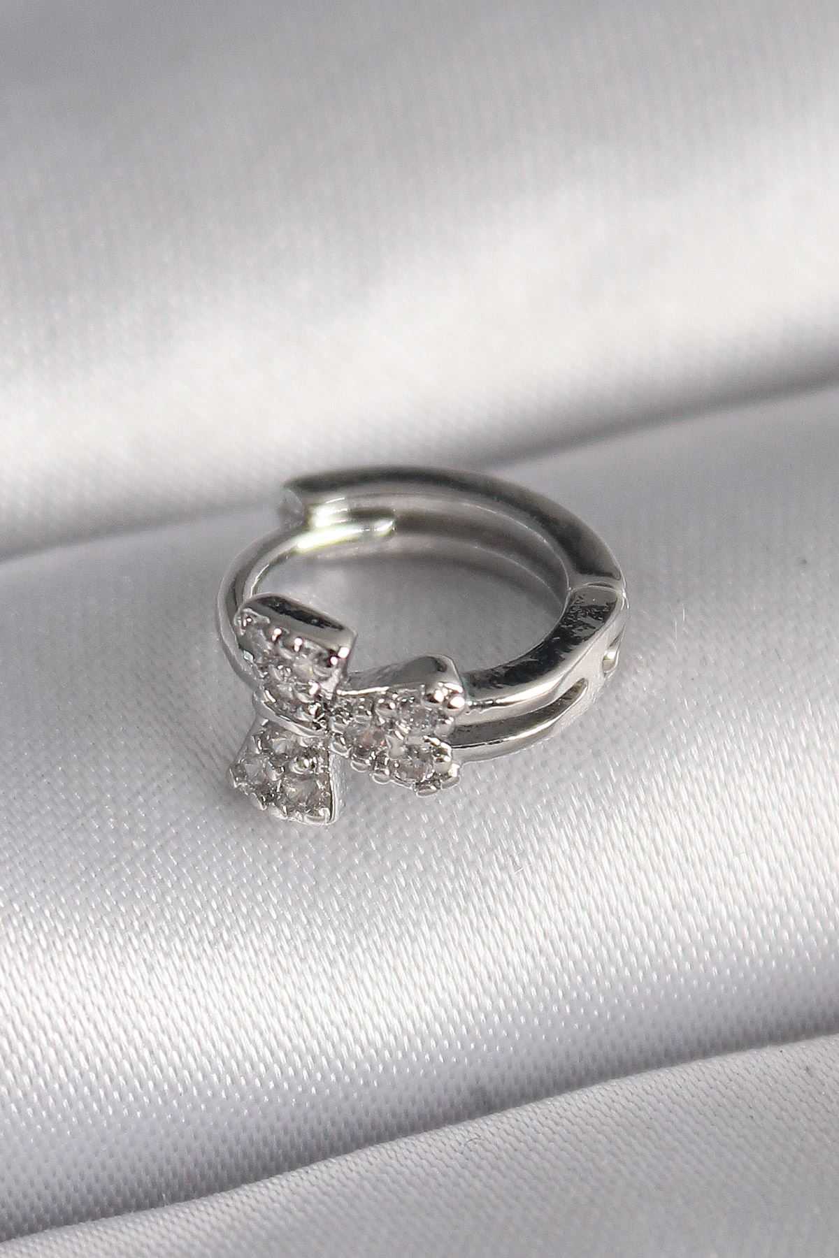 316L Çelik Gümüş Renk Zirkon Taşlı Kurdele Model Tragus Piercing - TJ-PR1335