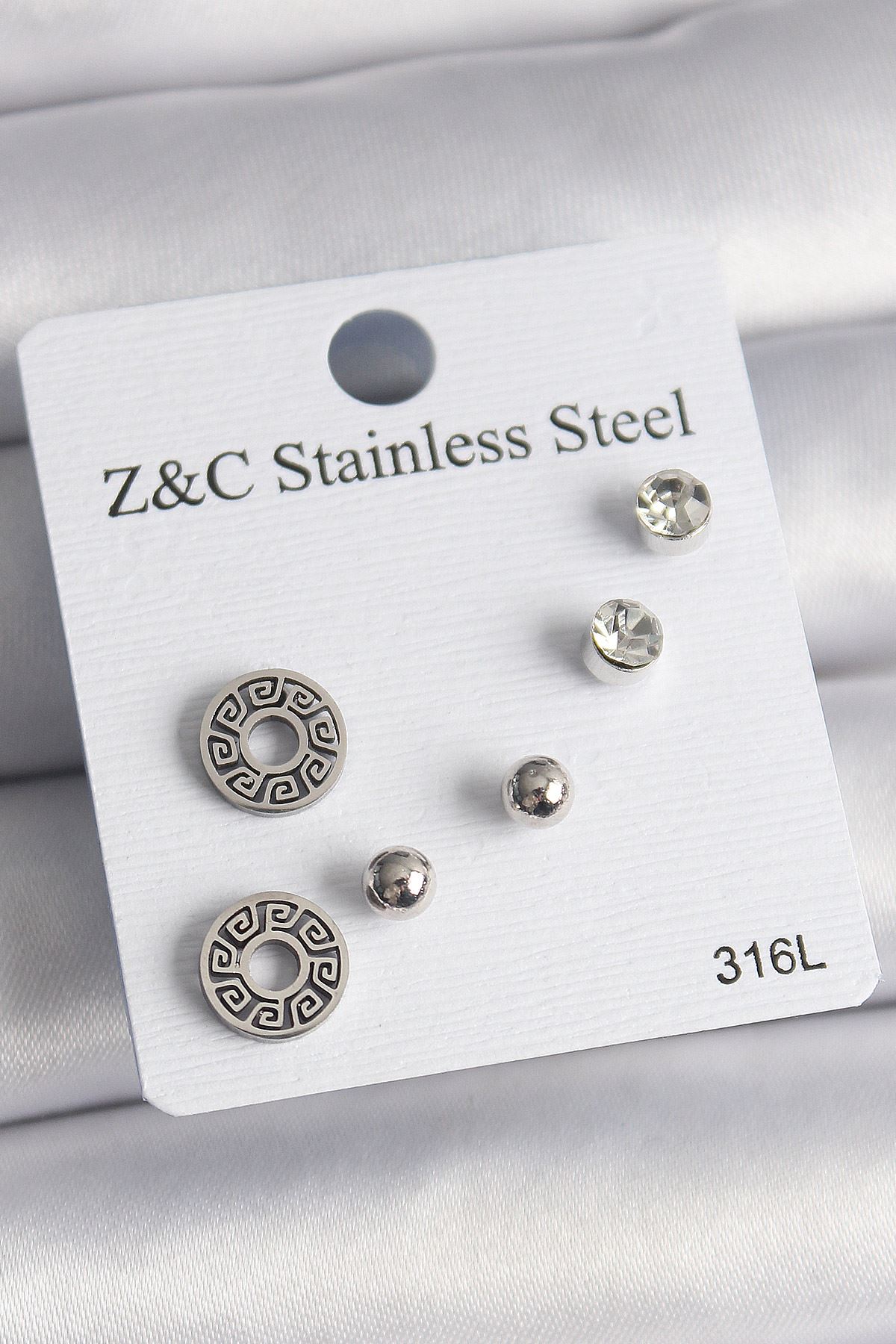 316L Çelik Gümüş Renk Zirkon Taşlı Labirent Model Kadın Küpe Seti - TJ-BKP10012