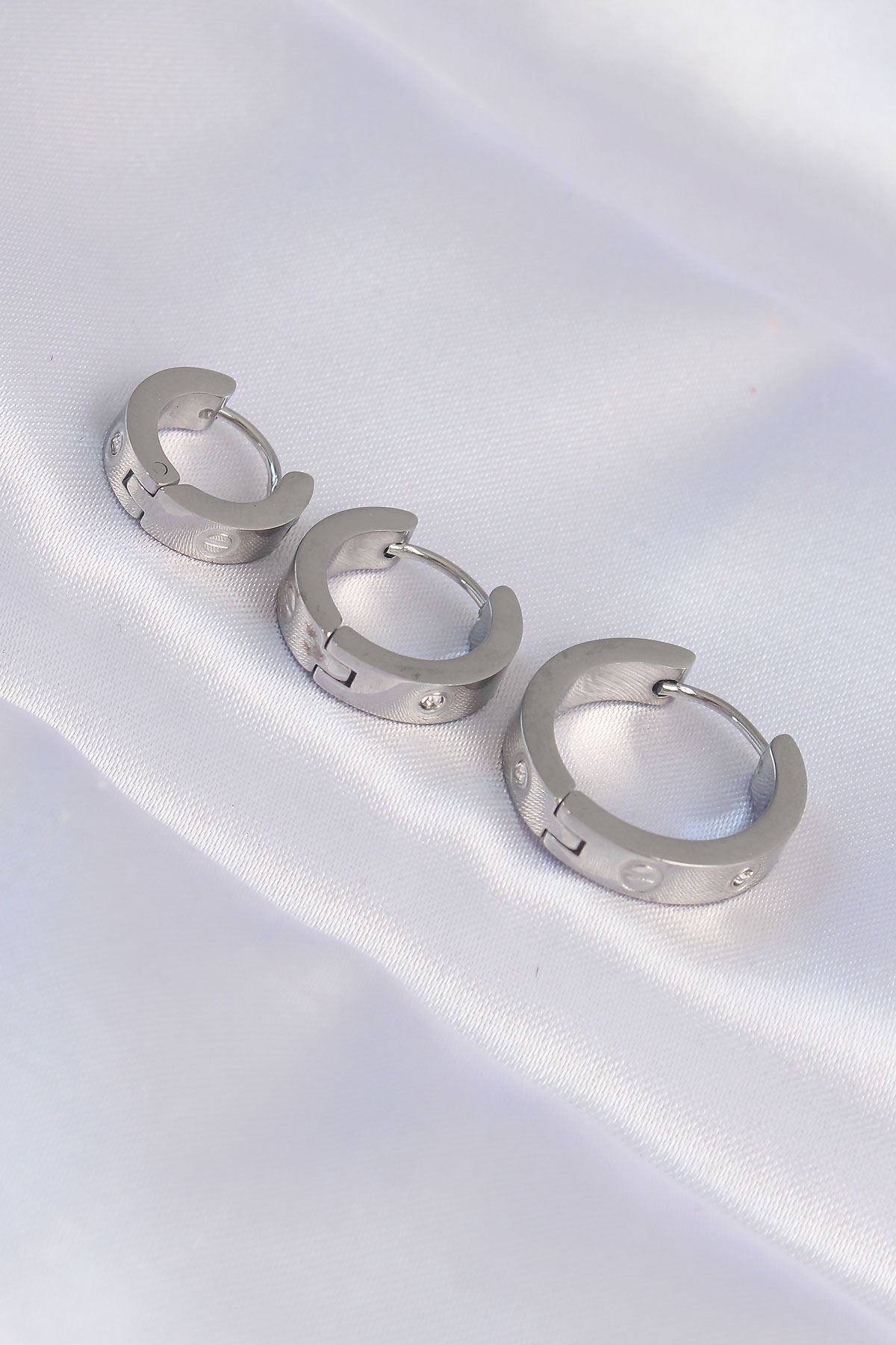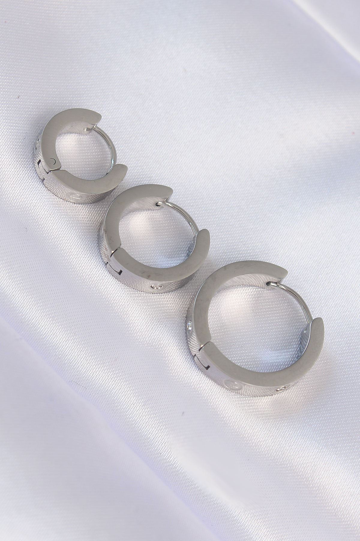 316L Çelik Gümüş Renk Zirkon Taşlı Model 3lü Halka Küpe - TJ-BKP9008
