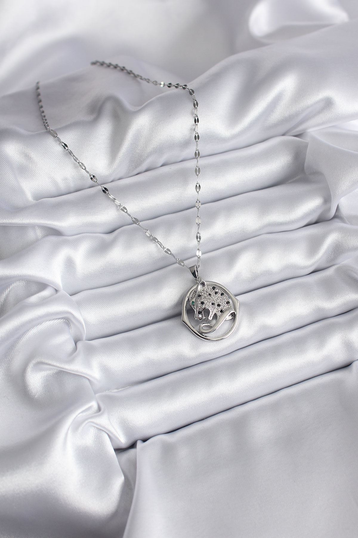 316L Çelik Gümüş Renk Zirkon Taşlı Puma Model Kadın Kolye - TJ-BKO8177