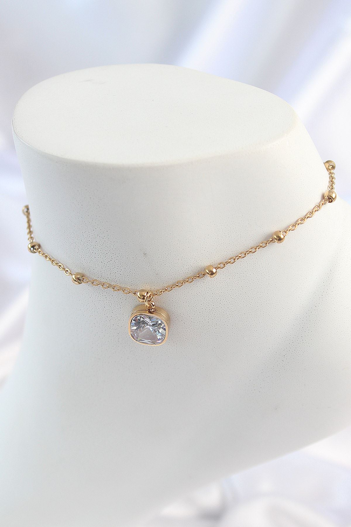 316L Çelik Zincir Gold Renk Zirkon Taşlı Fiyonk Kolye - TJ-BKO8742