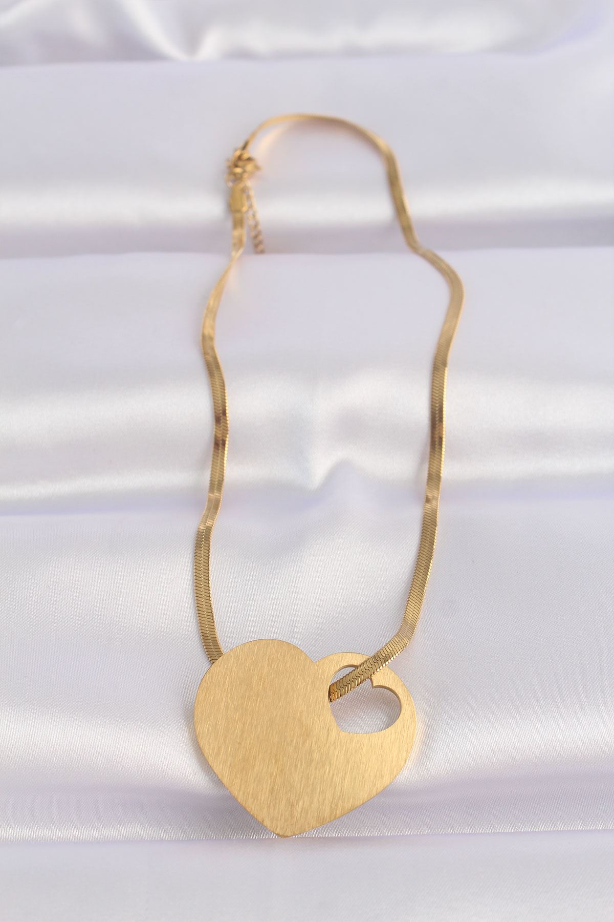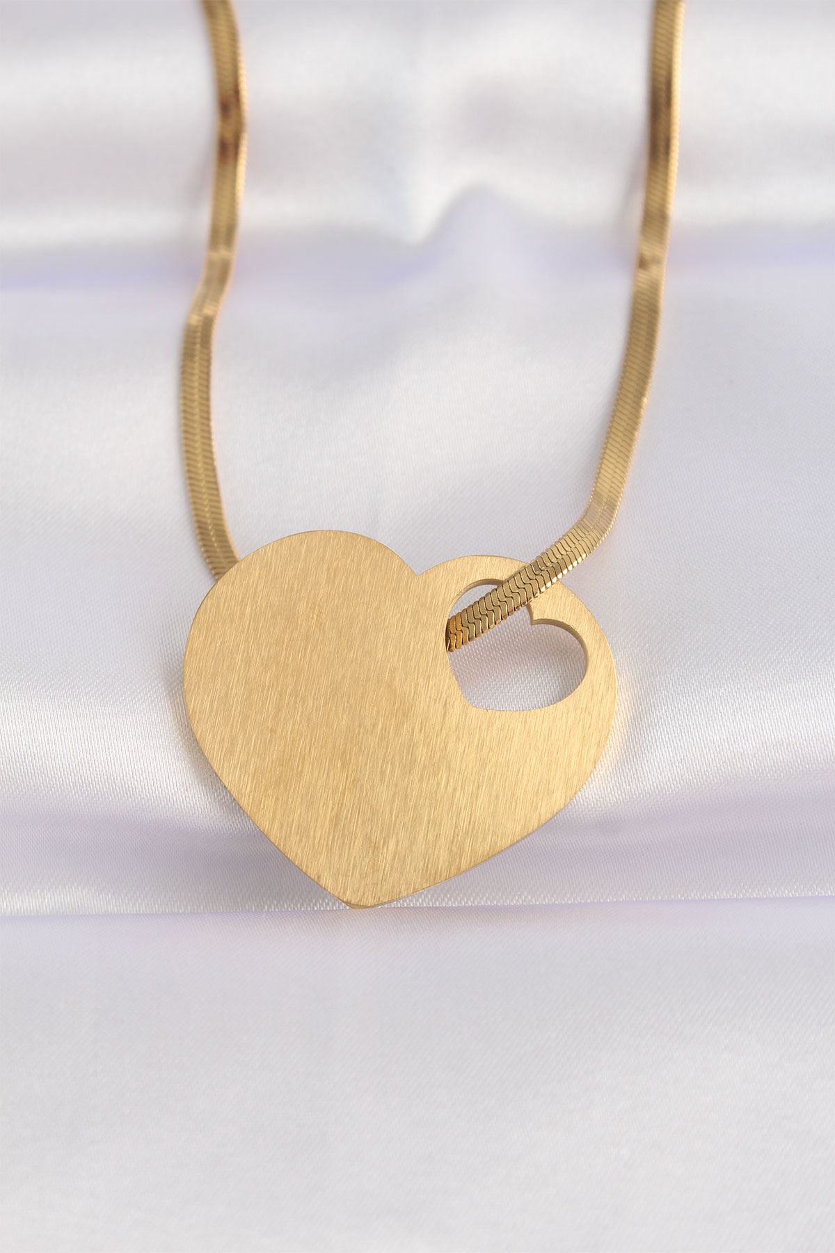316L Çelik Zincir Altın Renk Zincirli Gümüş Renk Kalp Tasarımlı Kolye - TJ-BKO8609