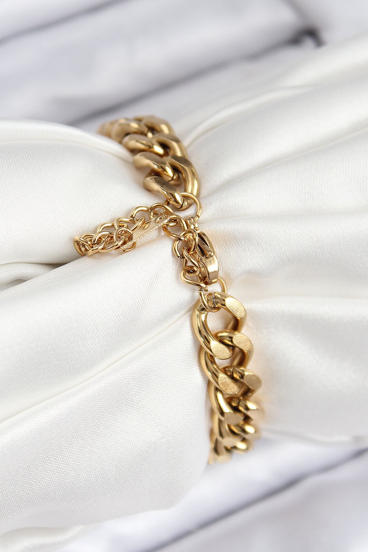316L Çelik Klasik Kalın Zincir Model Gold Renk Kadın Bileklik - TJ-BB7786