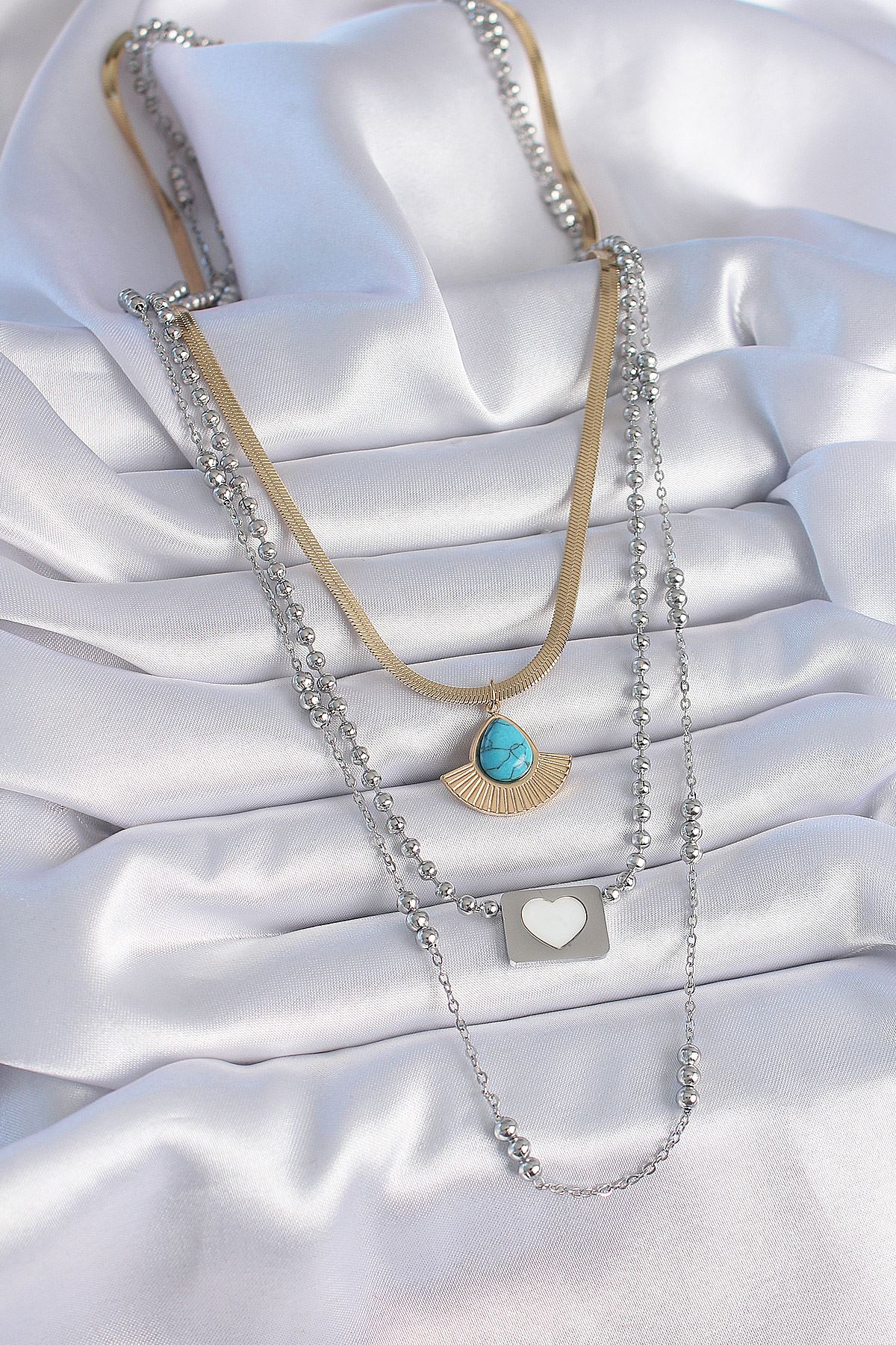 316L Çelik Mix Renk 3'lü Zincir Damla Madalyon Figür Uzun Kadın Kolye - TJ-BKO9402