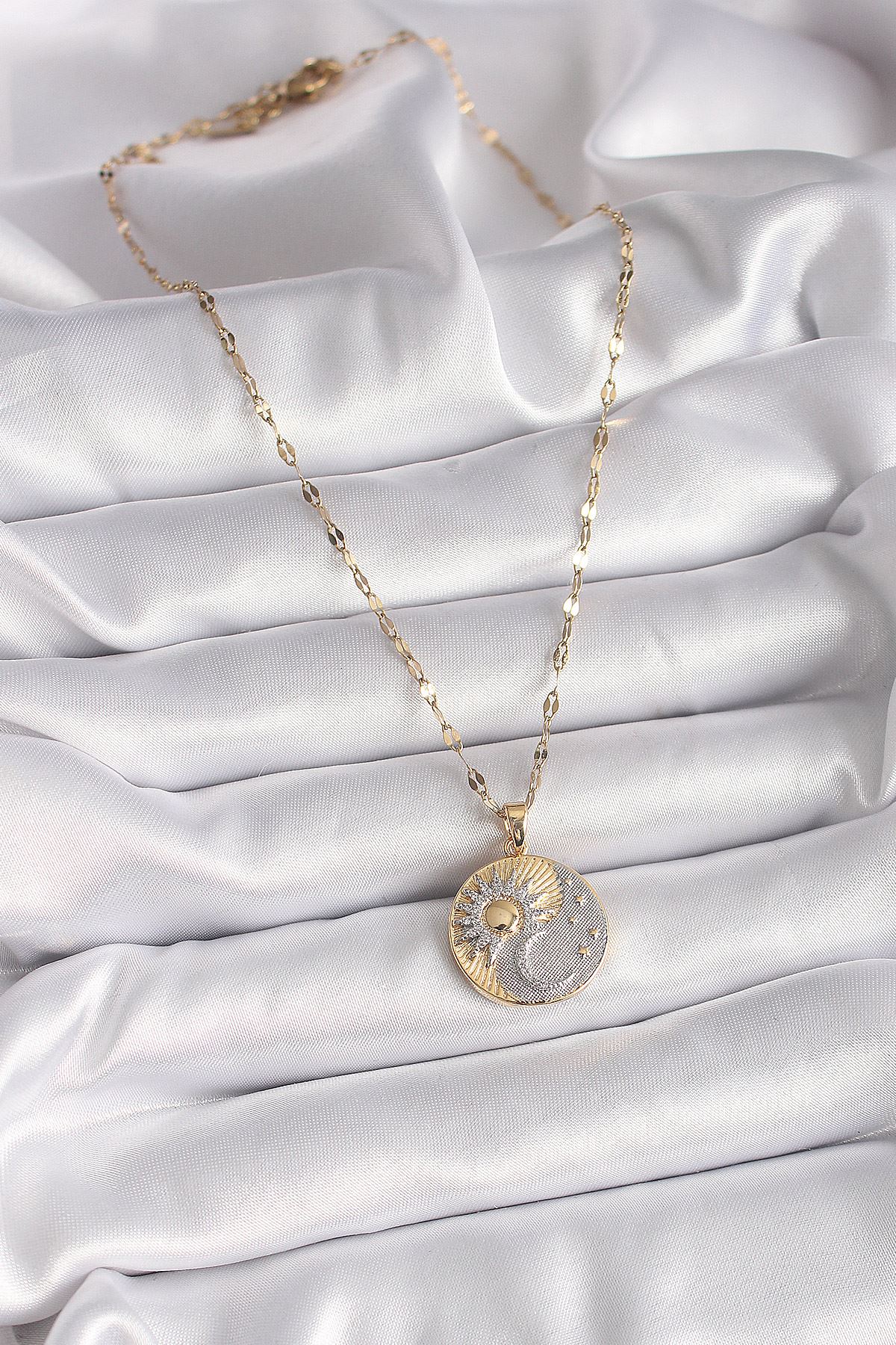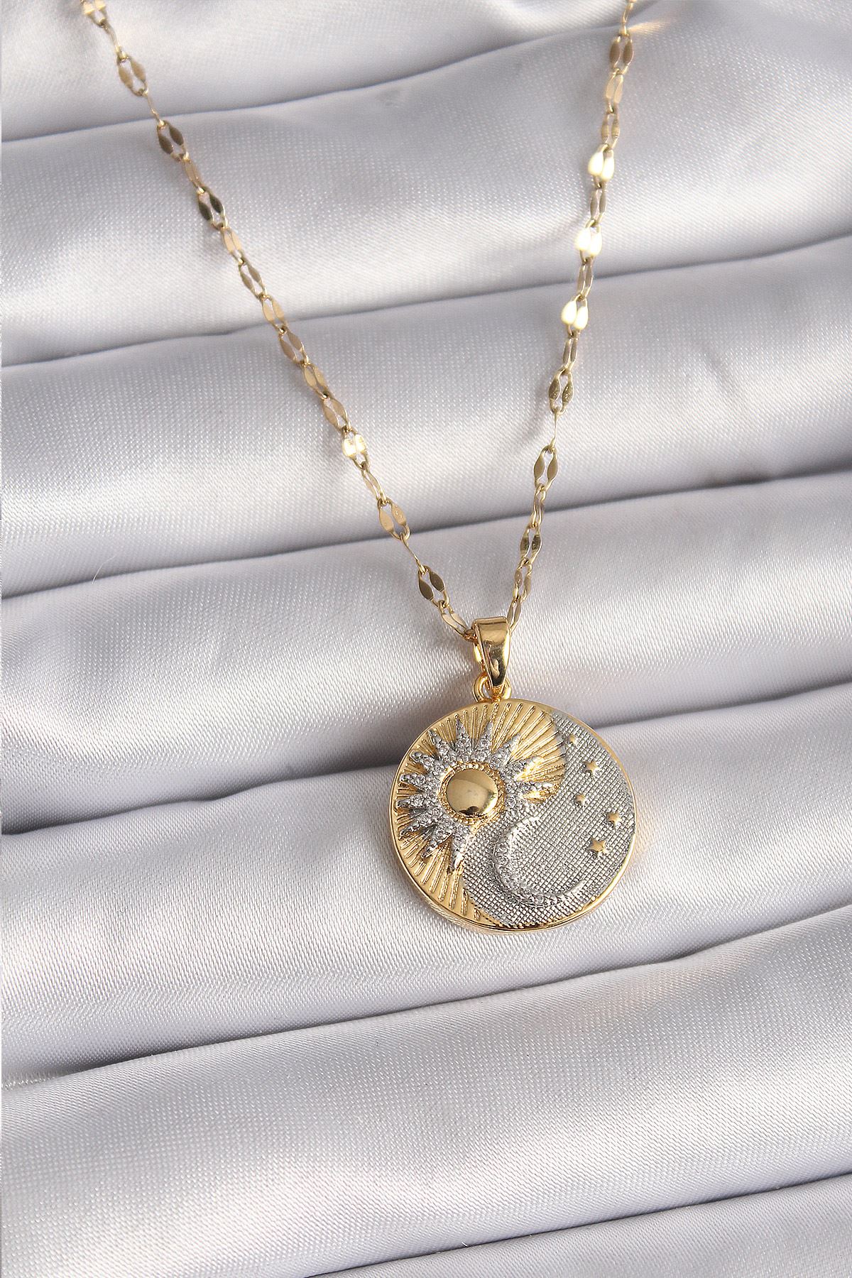 316L Çelik Mix Renk Zincir Zirkon Taşlı Gün Doğumu/Batımı Madalyon Model Kadın Kolye - TJ-BKO9514