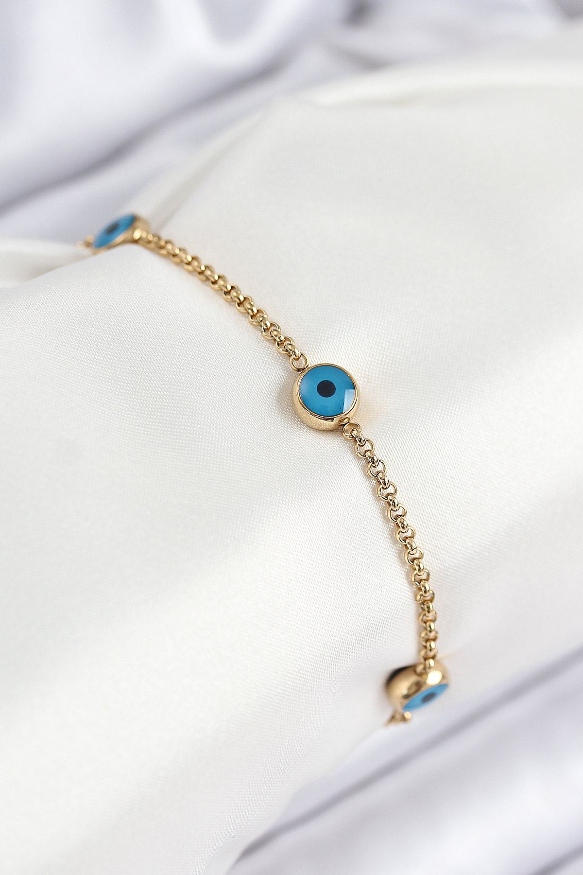 316L Çelik Nazar Boncuğu Model Gold Renk Kadın Bileklik - TJ-BB7840