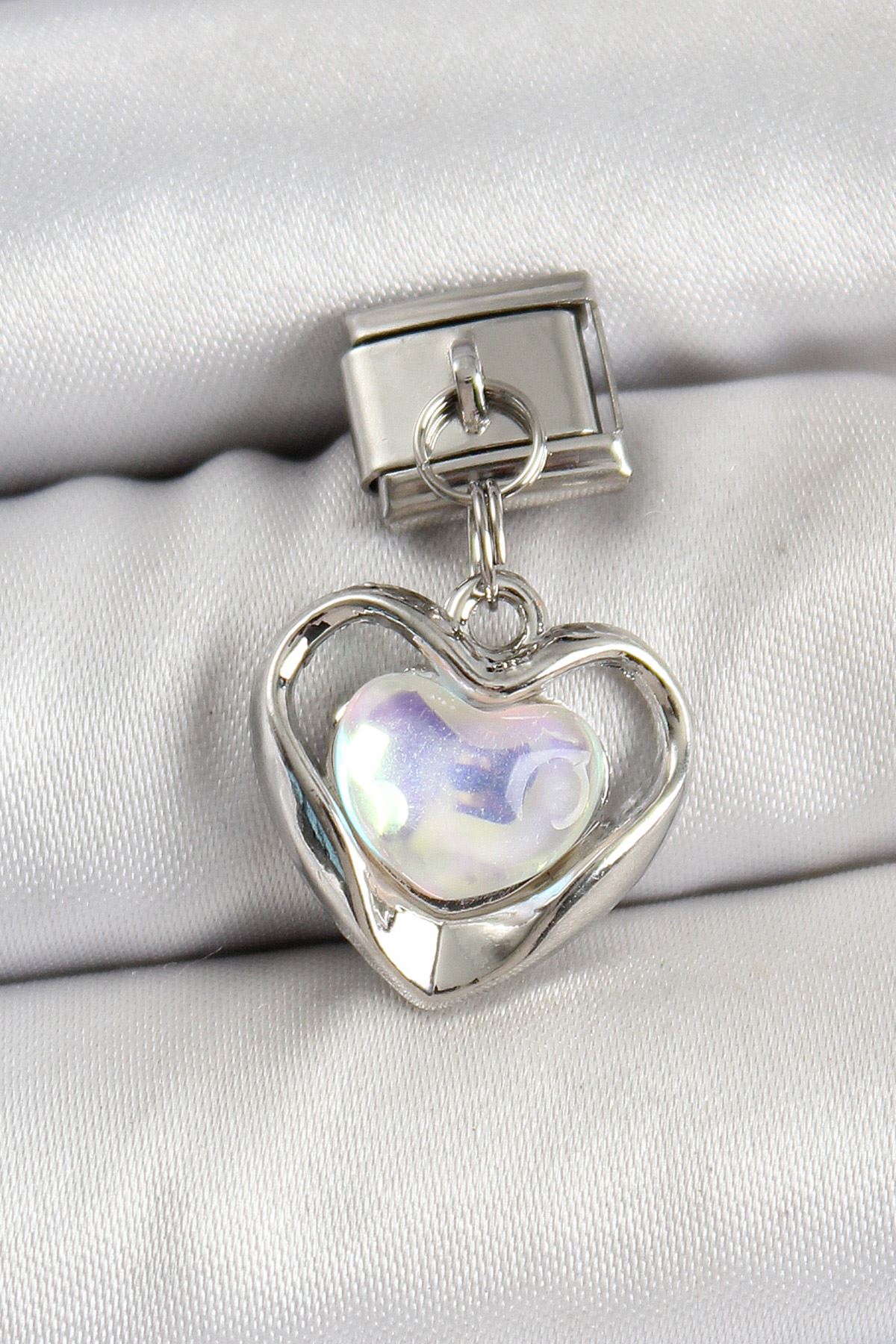 316L Çelik Sallantılı Zirkon Taşlı Kalp Model Gümüş Renk Nomination Charm - TJ-BC1461