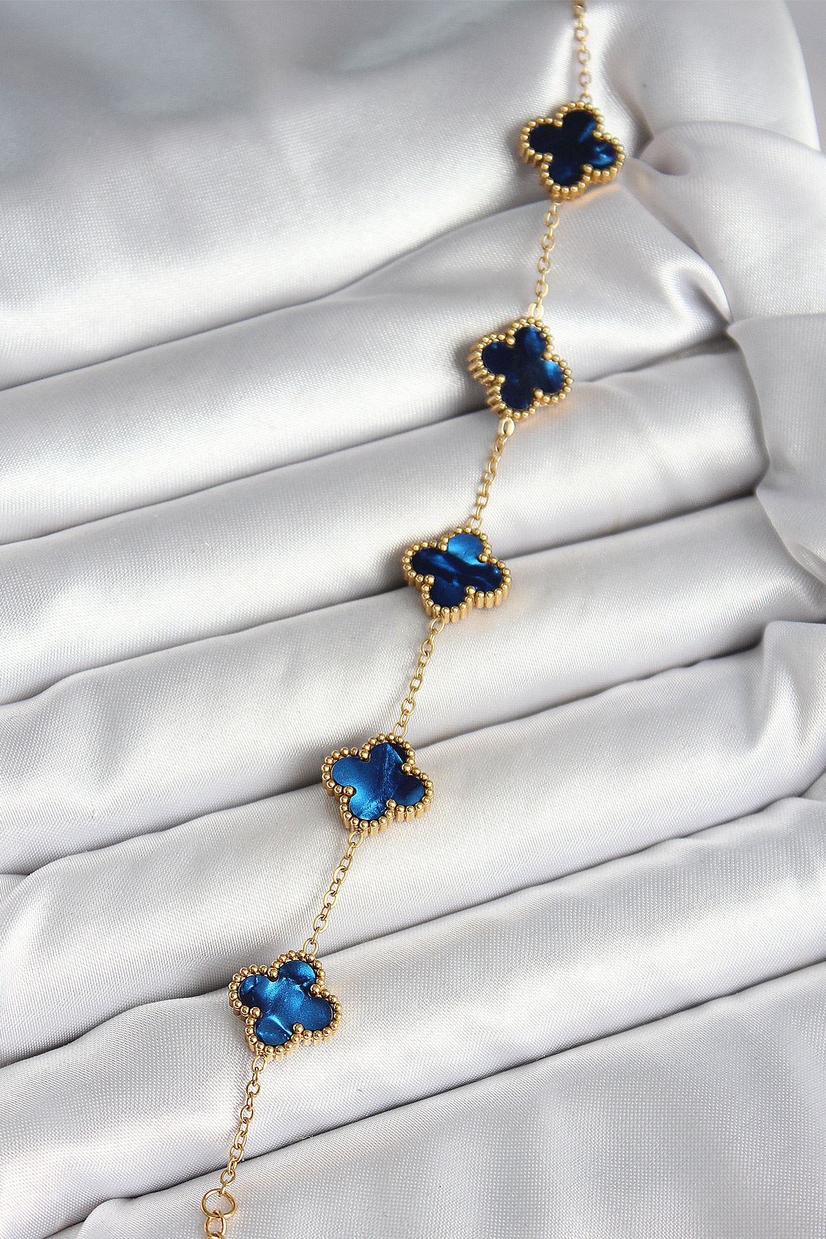 316L Çelik Sedefli Lacivert Gold Renk Yonca Kadın Bileklik - TJ-BB6964