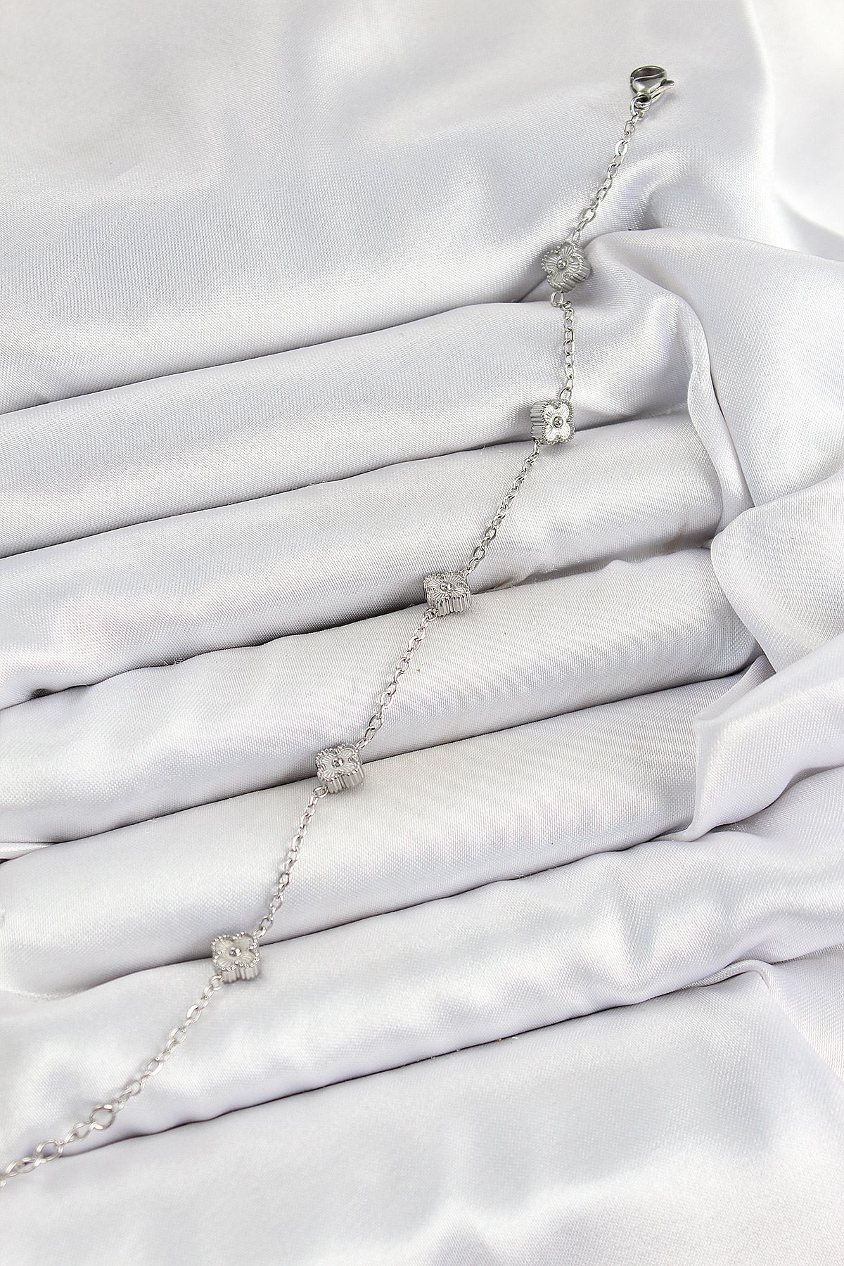 316L Çelik Yonca Model Gümüş Renk Kadın Bileklik - TJ-BB7362
