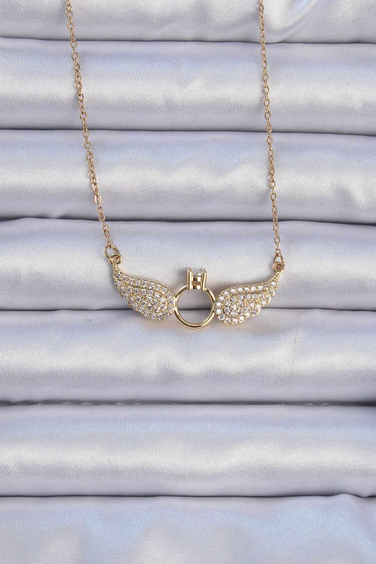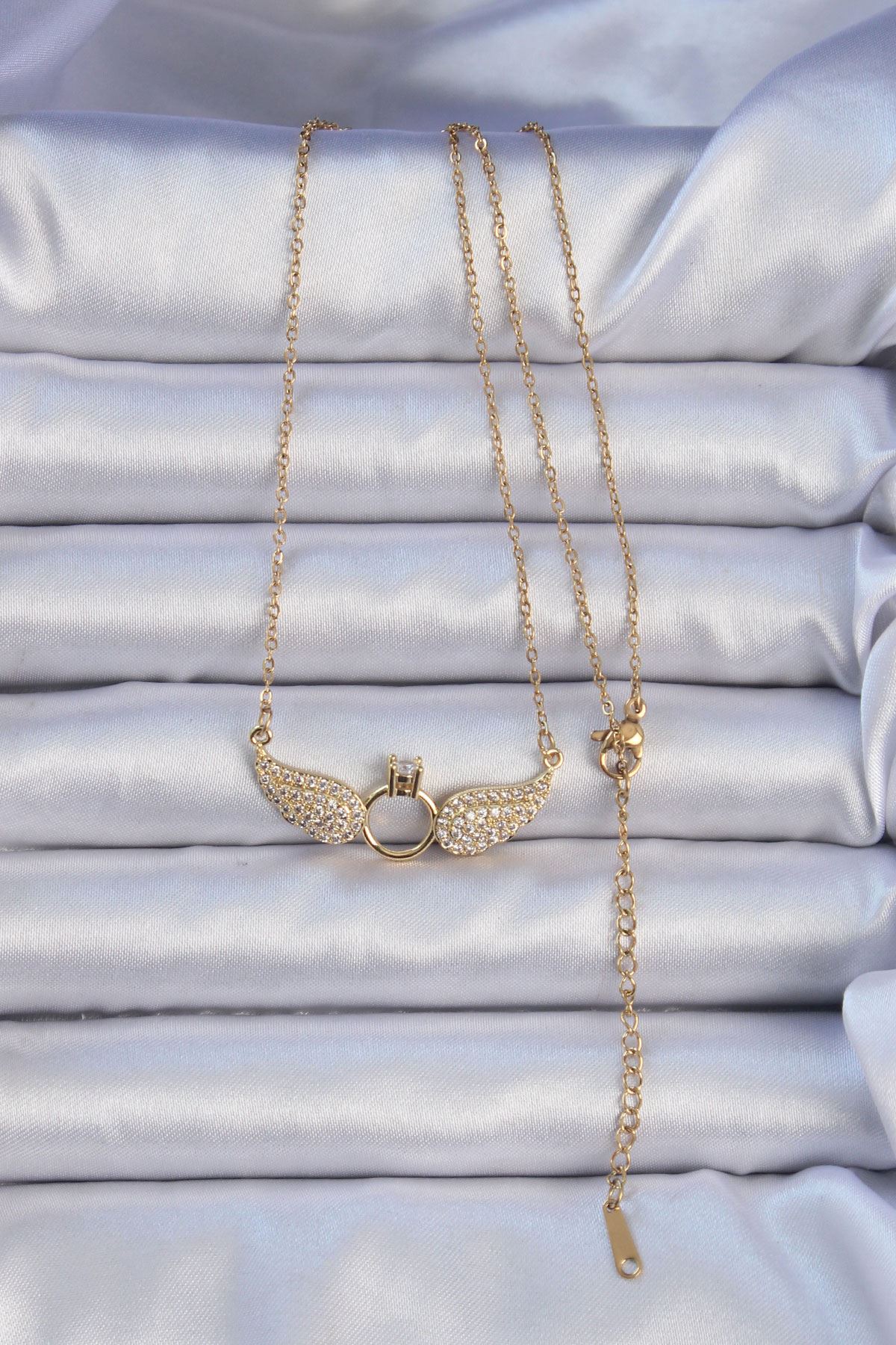 316L Çelik Zincir Altın Renk Kanatlı Tektaş Kolye - TJ-BKO9077
