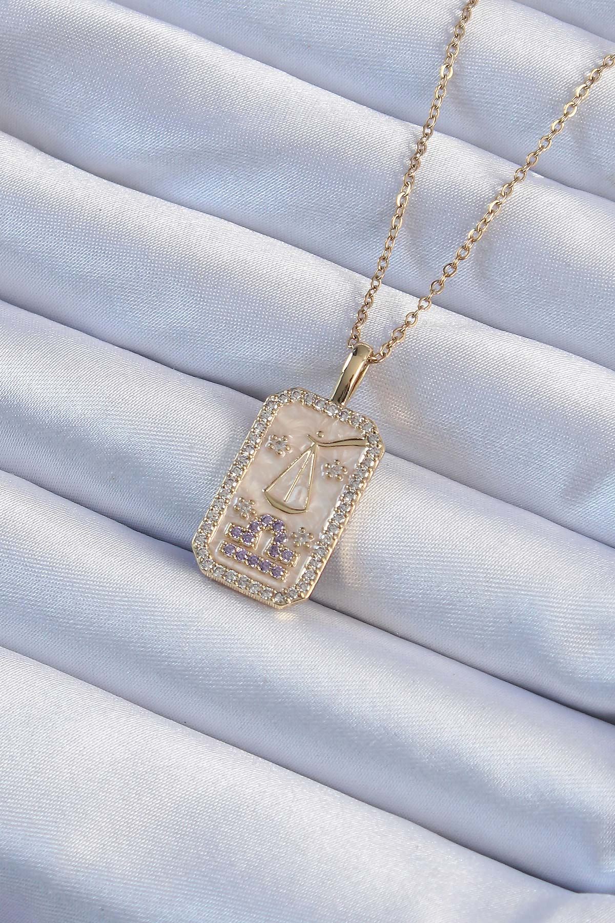 316L Çelik Zincir Altın Renk Lila Zirkon Taşlı Tarot Kolye - TJ-BKO9239