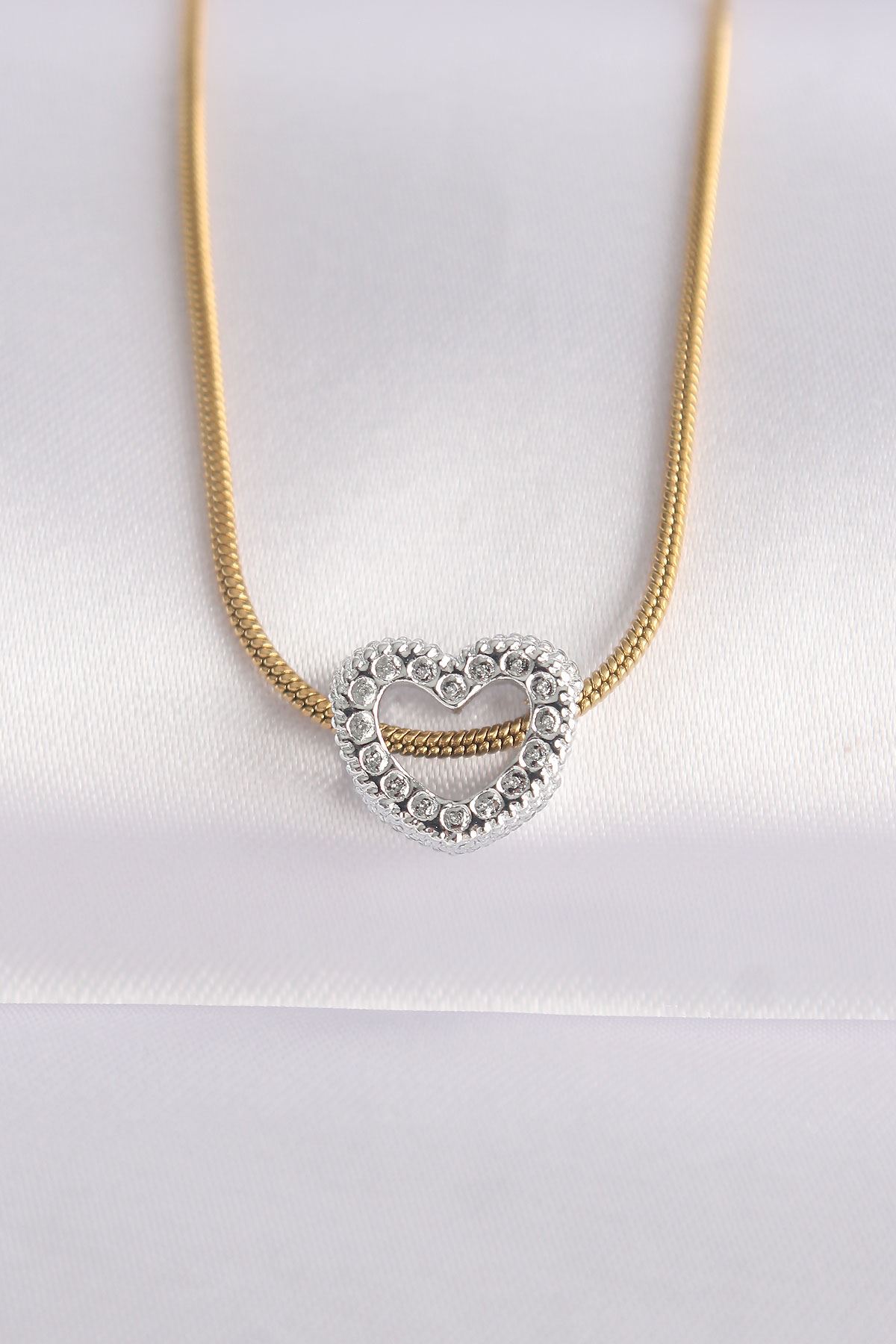 316L Çelik Zincir Altın Renk Zincirli Gümüş Renk Kalp Tasarımlı Kolye - TJ-BKO8609