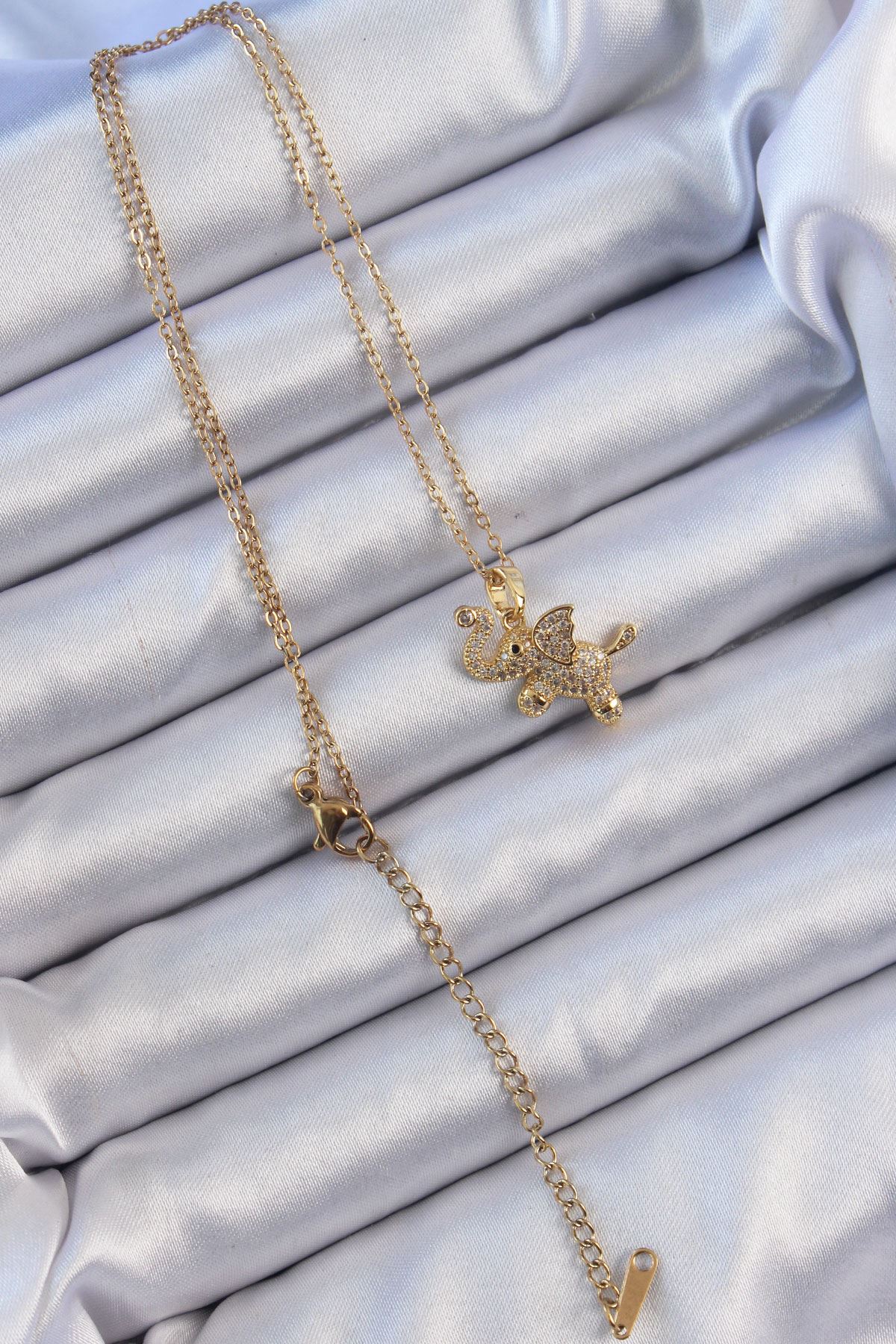 316L Çelik Zincir Altın Renk Zirkon Taşlı Fil Kolye - TJ-BKO9091