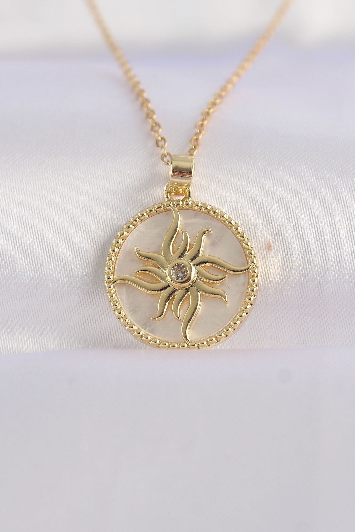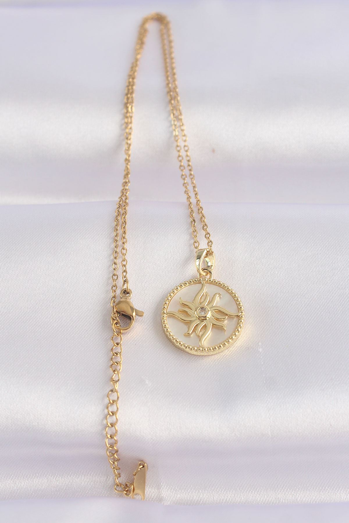 316L Çelik Zincir Altın Renk Zirkon Taşlı Oval Tasarım Güneş Kolye - TJ-BKO8653