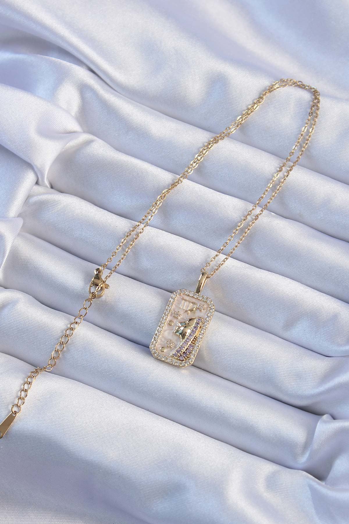 316L Çelik Zincir Altın Renk Zirkon Taşlı Yüz Figürlü Tarot Kolye - TJ-BKO9241