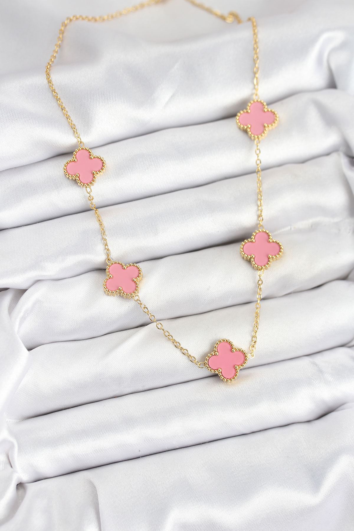 316L Çelik Zincir Gold Pembe Renk Yonca Kadın Kolye - TJ-BKO10583