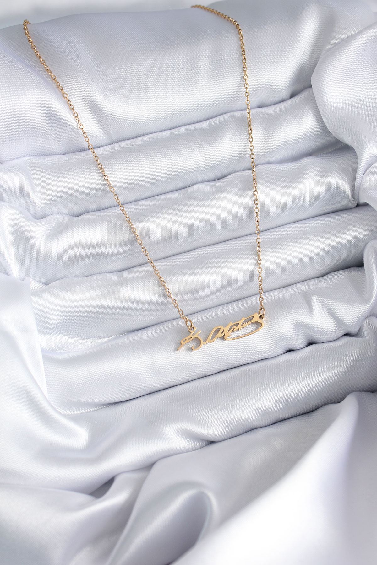316L Çelik Zincir Gold Renk Atatürk İmzası Model Kadın Kolye - TJ-BKO7842