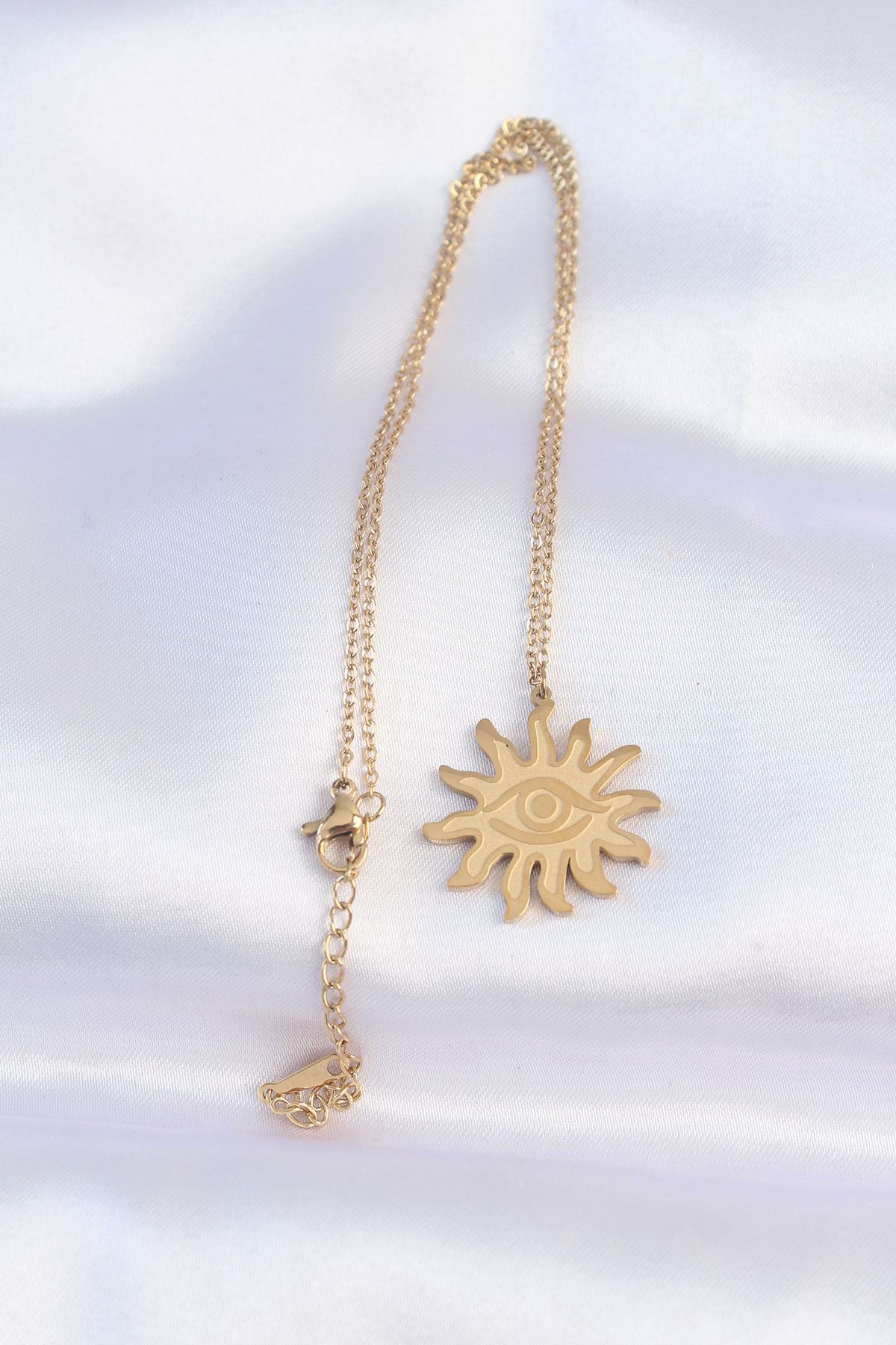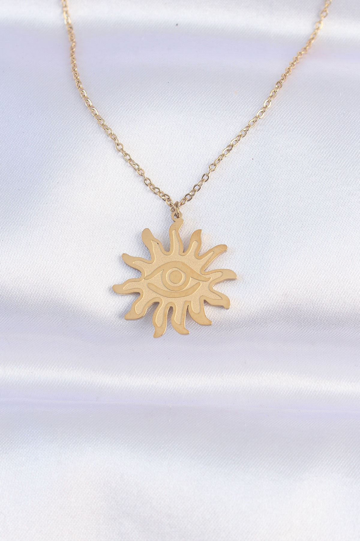 316L Çelik Zincir Gold Renk Göz Güneşi Tasarımlı Kolye - TJ-BKO8734