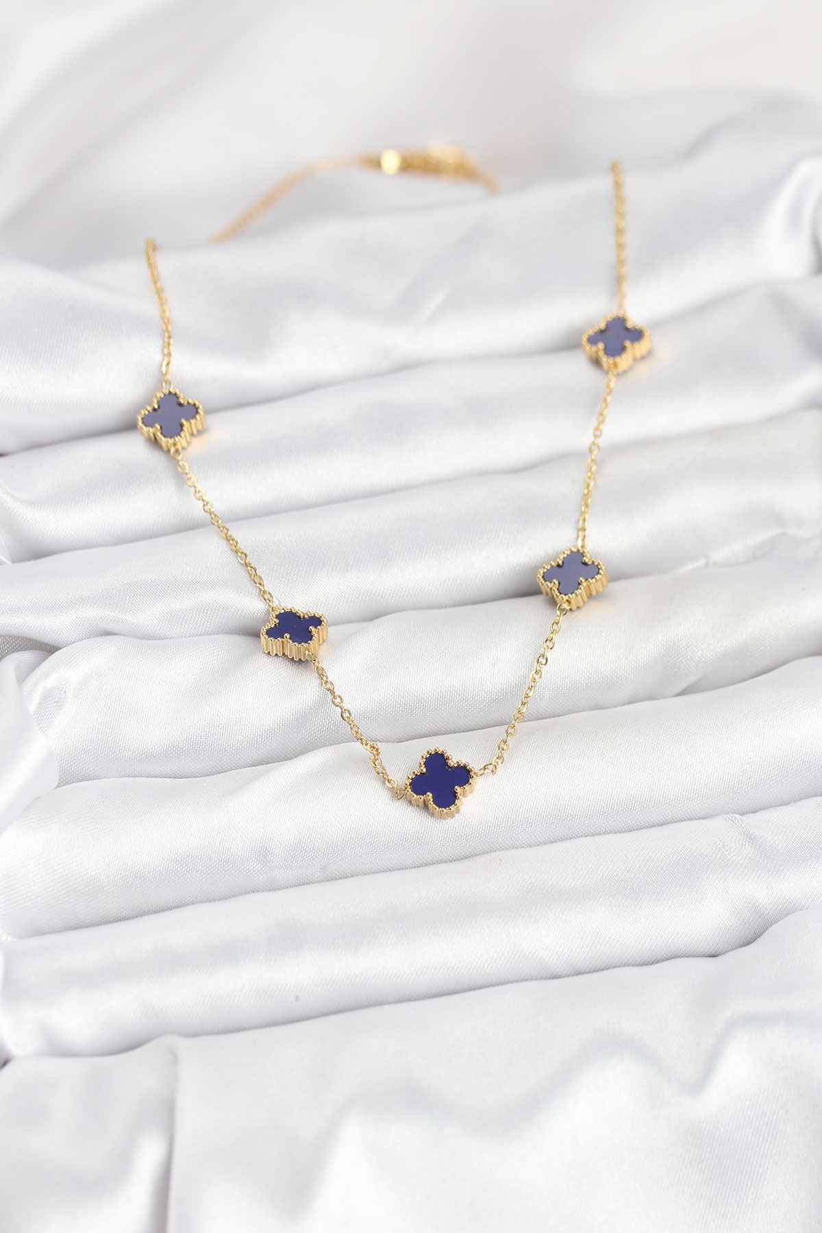 316L Çelik Zincir Gold Renk Lacivert Baby Boy Yonca Kadın Kolye - TJ-BKO10573