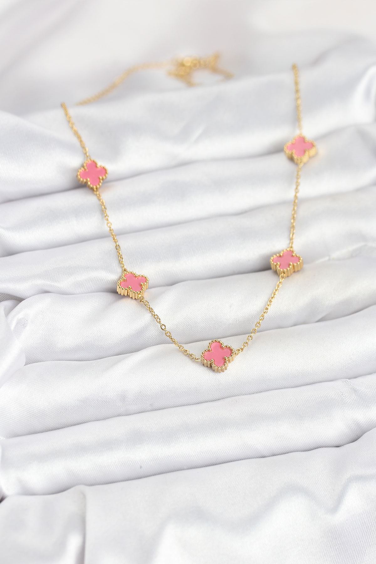 316L Çelik Zincir Gold Renk Pembe Baby Boy Yonca Kadın Kolye - TJ-BKO10572