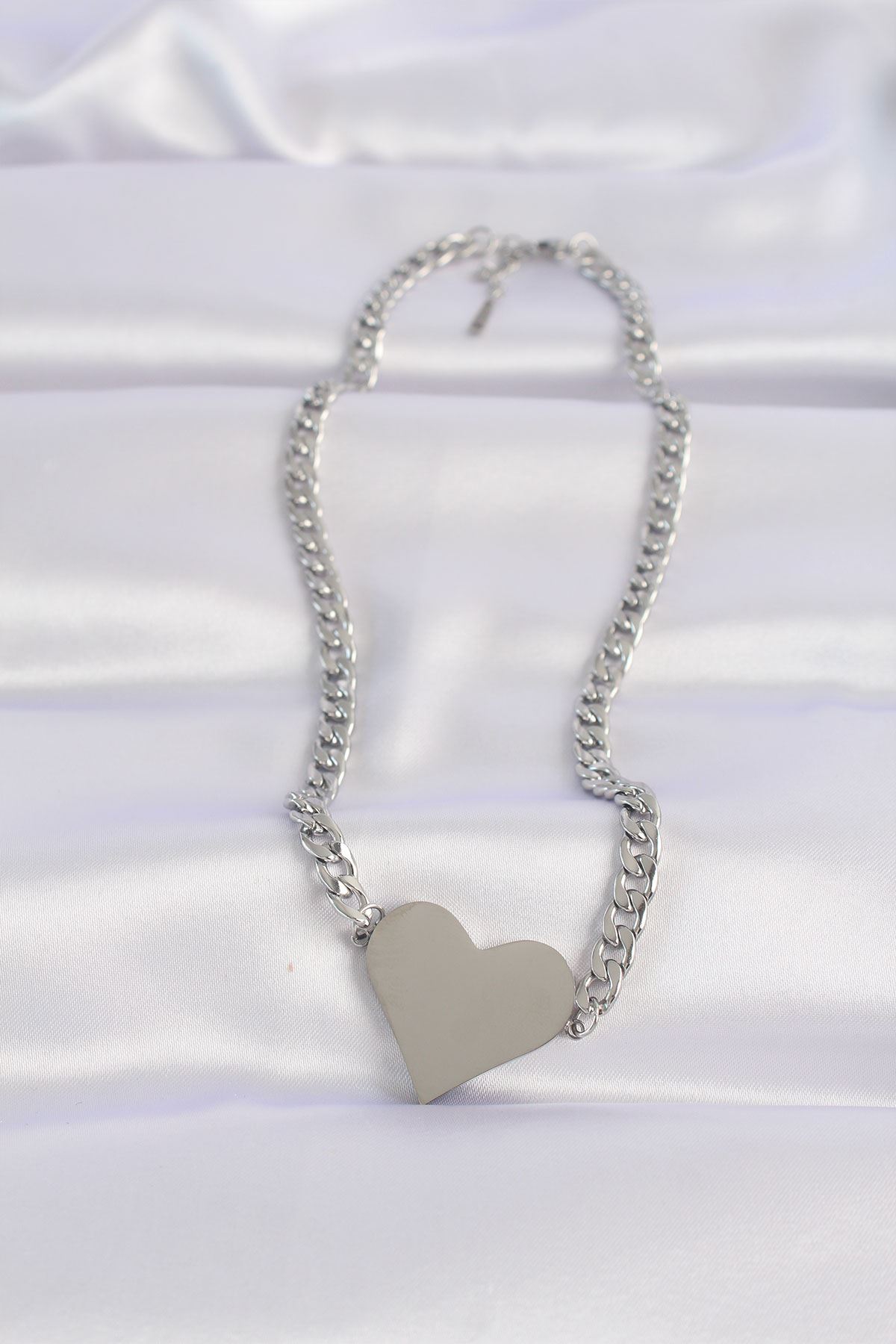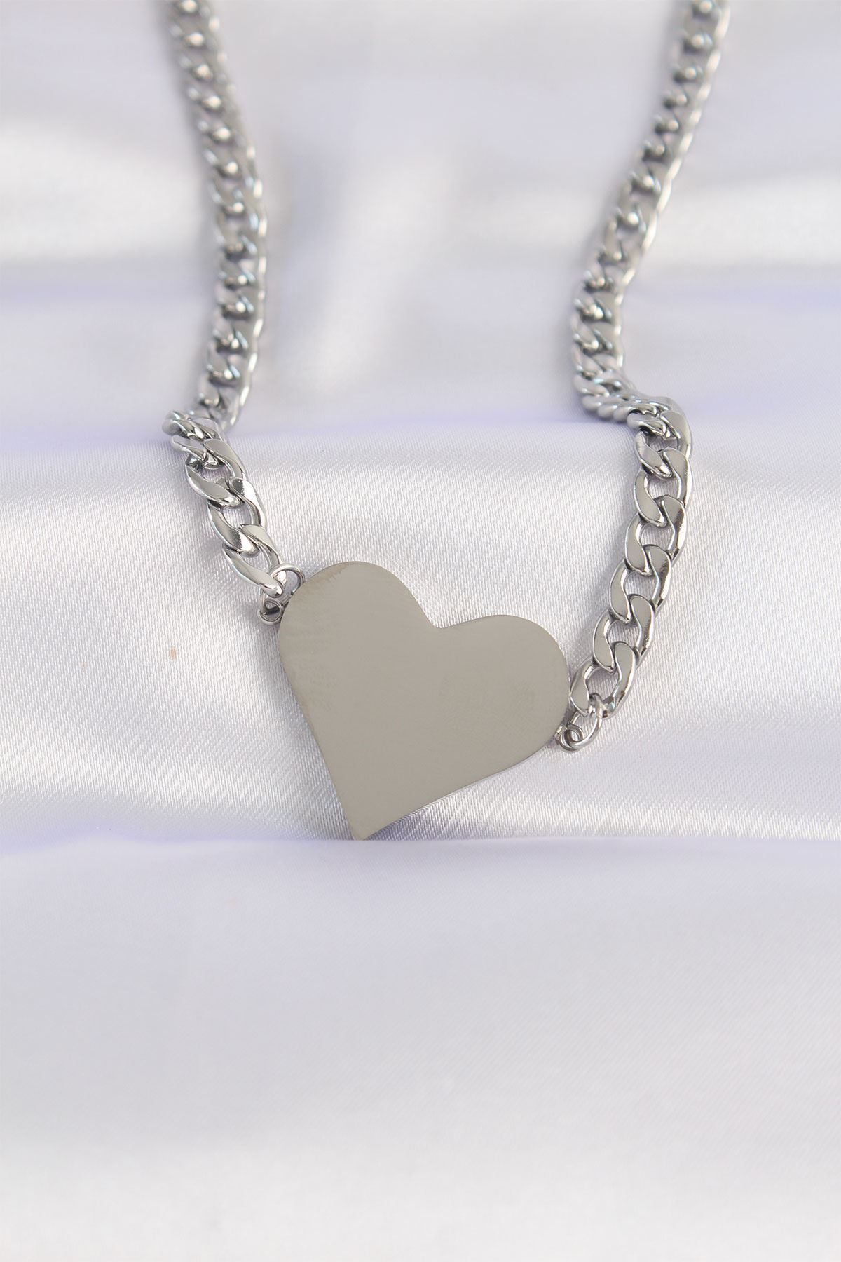 316L Çelik Zincir Gümüş Renk Düz Plaka Kalp Kolye - TJ-BKO8643