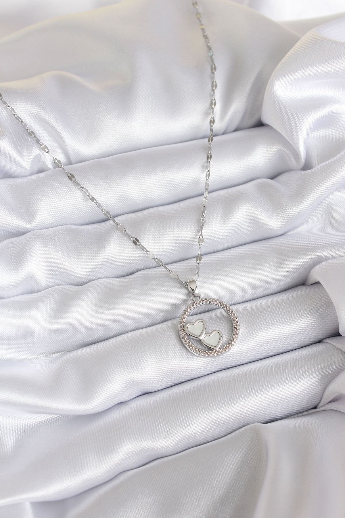 316L Çelik Zincir Gümüş Renk İşleme Detay Halka Kalp Model Kadın Kolye - TJ-BKO7804
