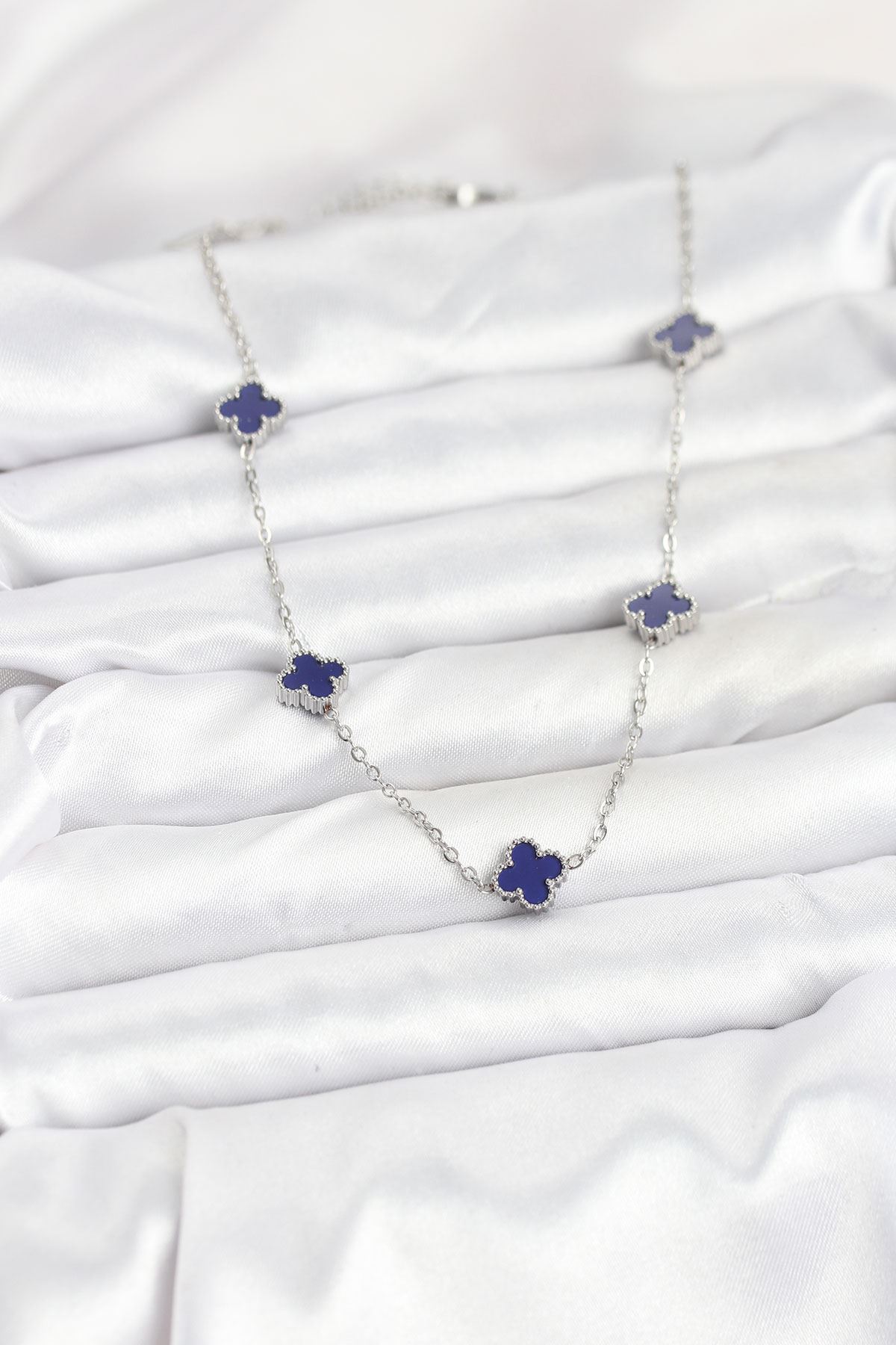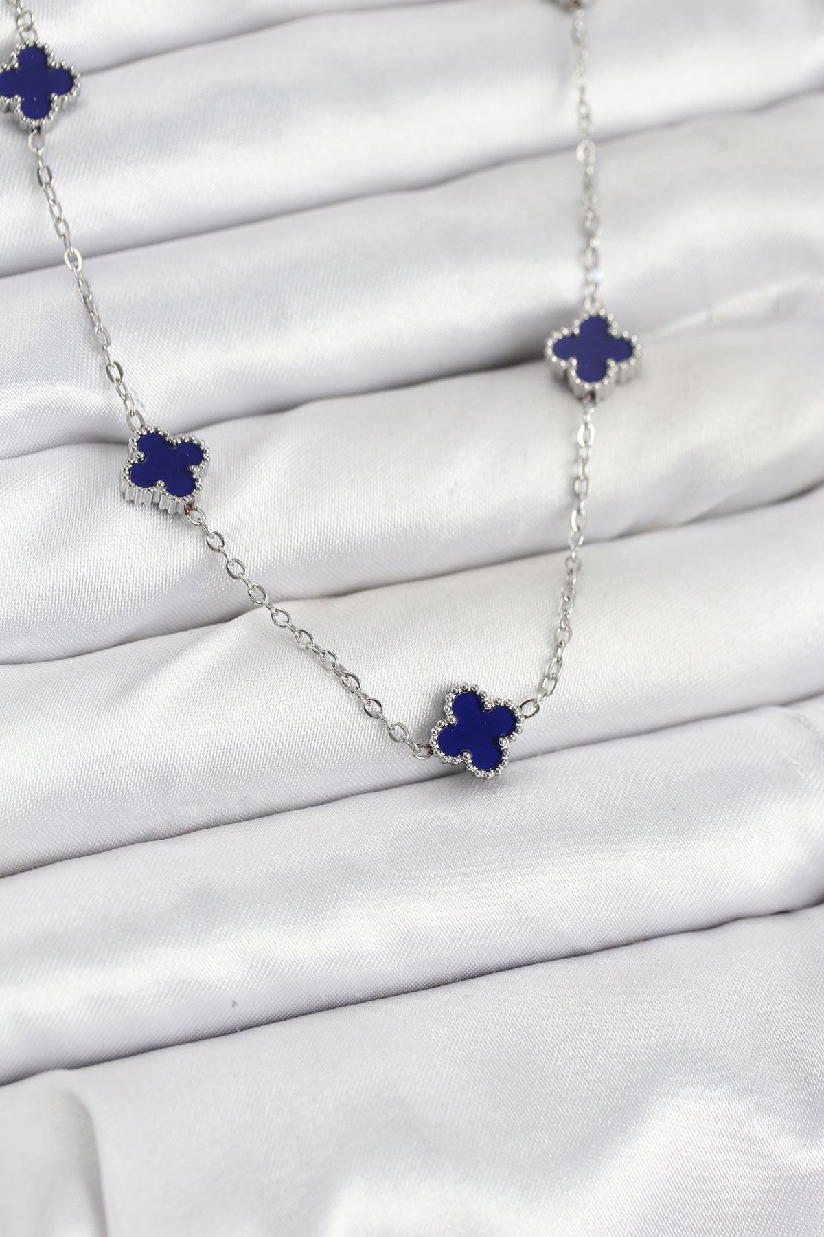 316L Çelik Zincir Gümüş Renk Lacivert Baby Boy Yonca Kadın Kolye - TJ-BKO10574
