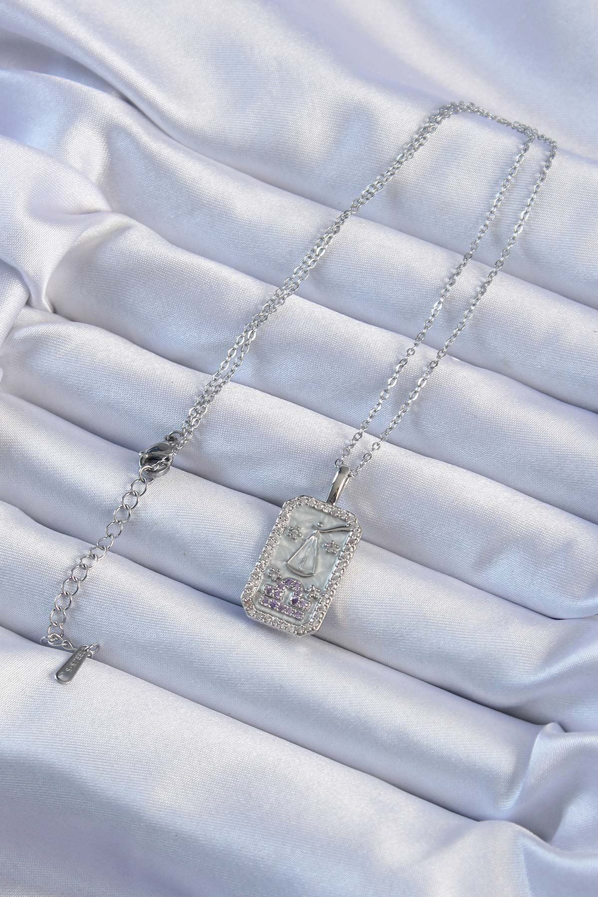 316L Çelik Zincir Gümüş Renk Lila Zirkon Taşlı Tarot Kolye - TJ-BKO9238