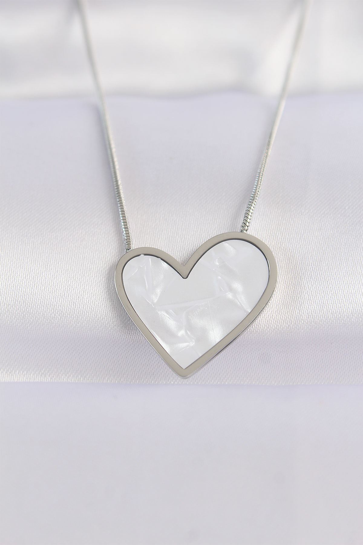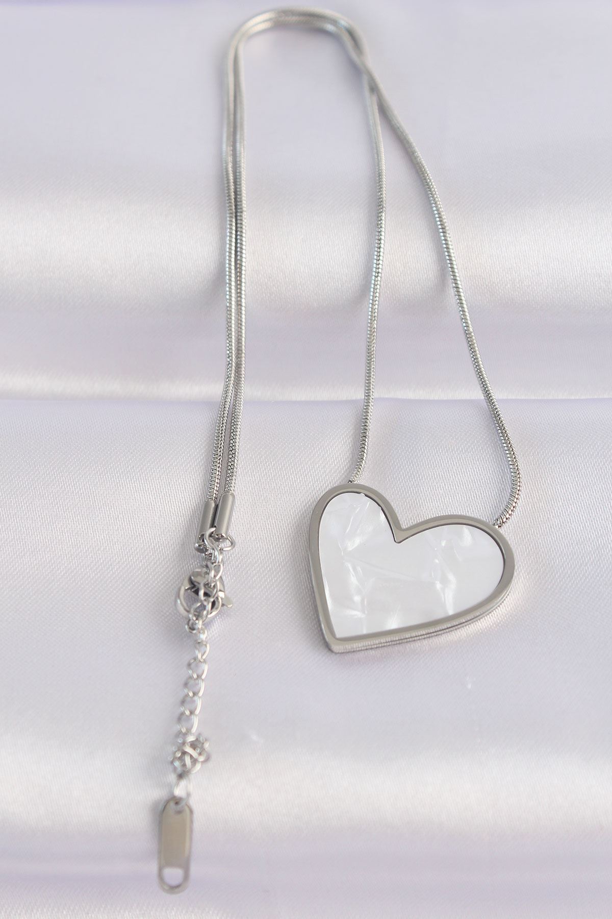 316L Çelik Zincir Gümüş Renk Mermer Desenli Kalp Kolye - TJ-BKO8656