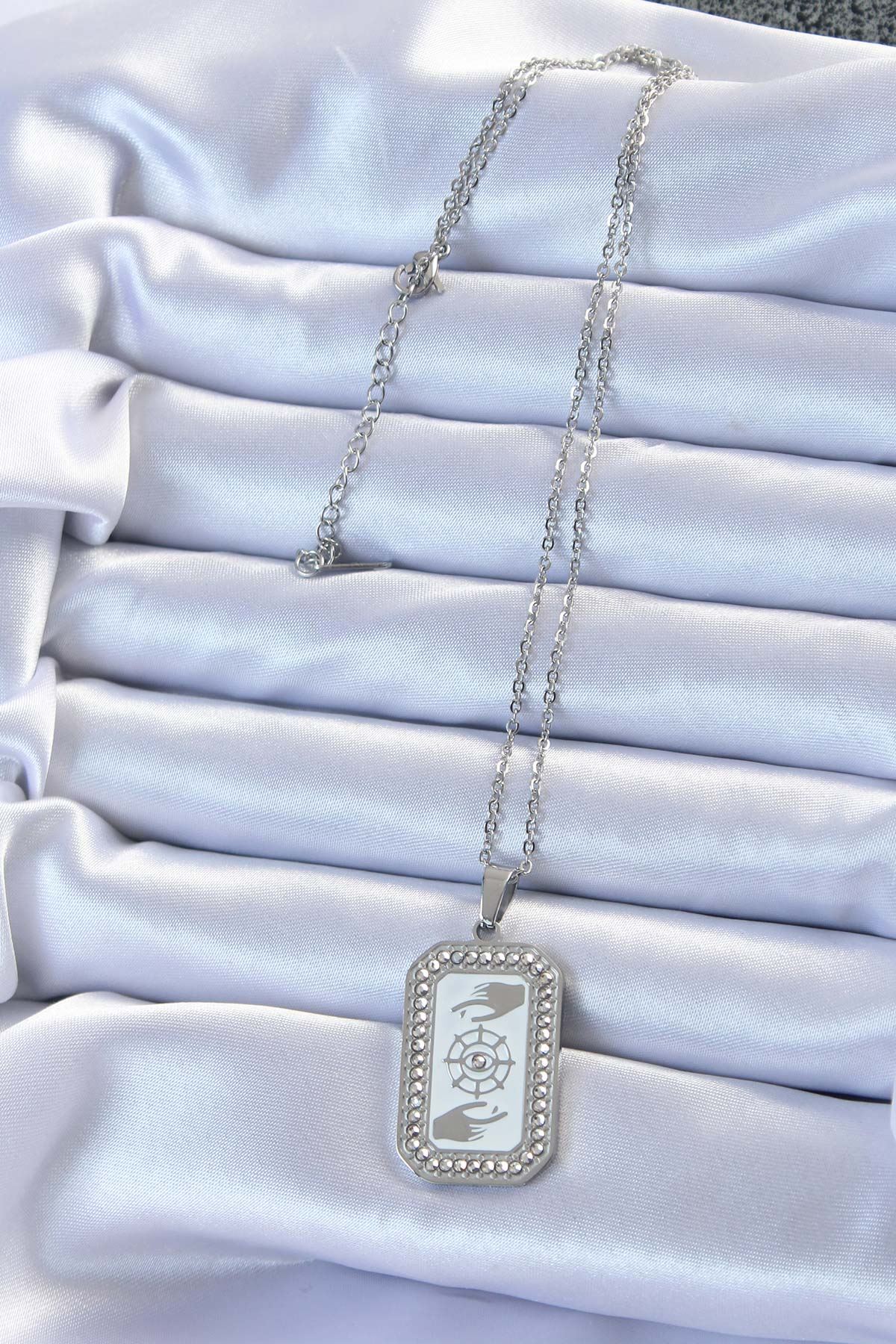 316L Çelik Zincir Gümüş Renk Mineli Zirkon Taşlı Göz Figür Tarot Kolye - TJ-BKO9216