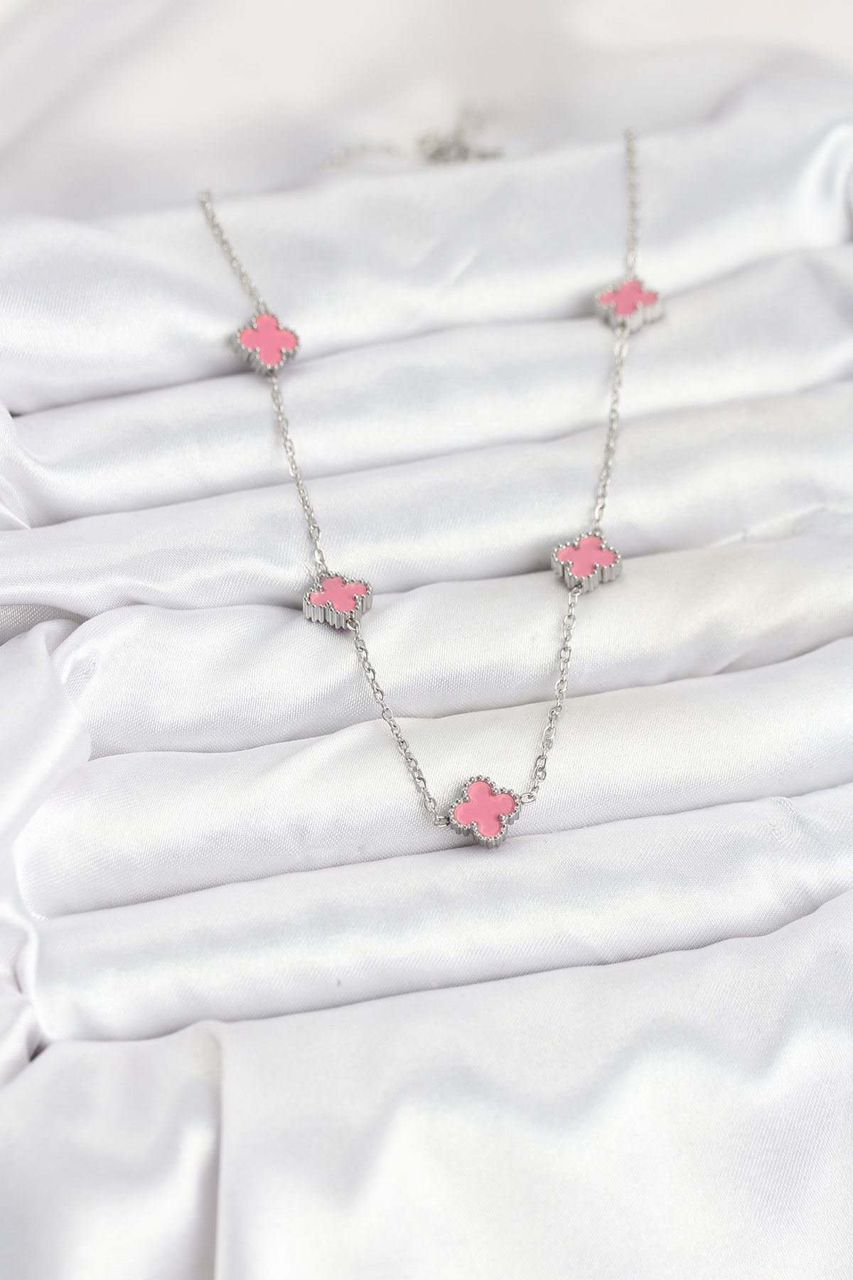 316L Çelik Zincir Gümüş Renk Pembe Baby Boy Yonca Kadın Kolye - TJ-BKO10575