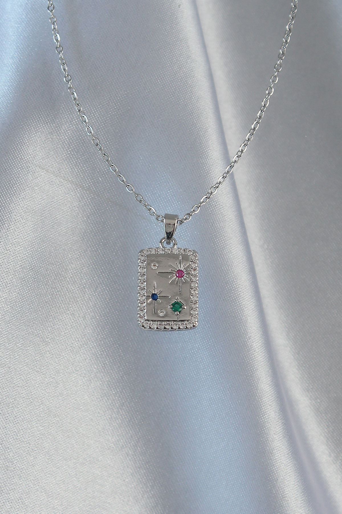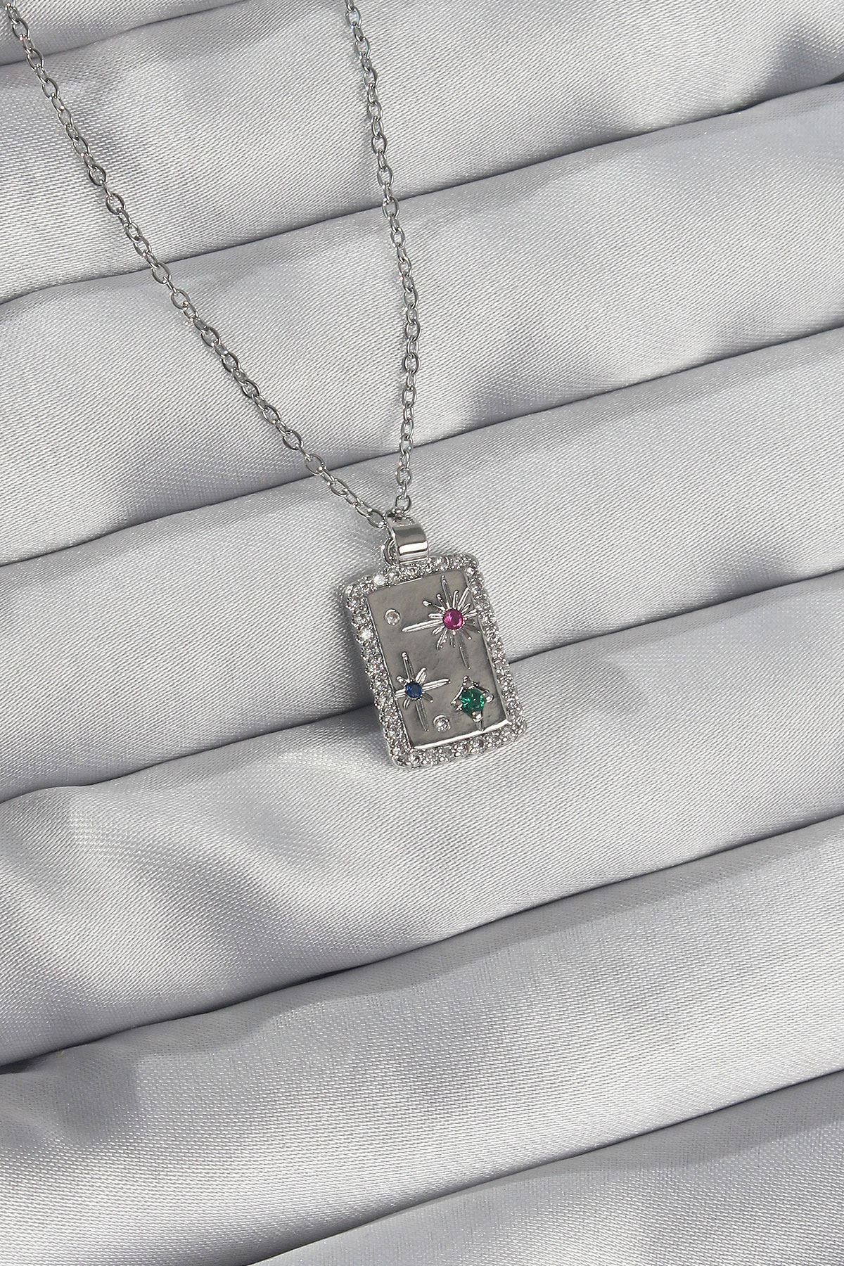 316L Çelik Zincir Gümüş Renk Renkli Zirkon Taşlı Vintage Kolye - TJ-BKO8910