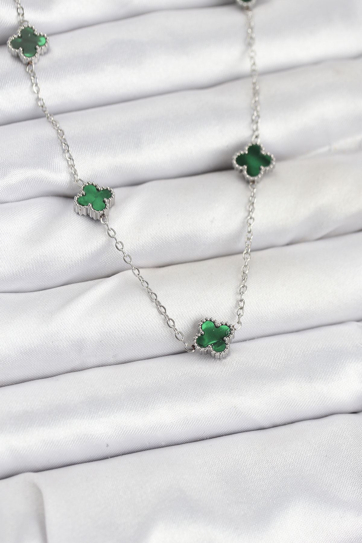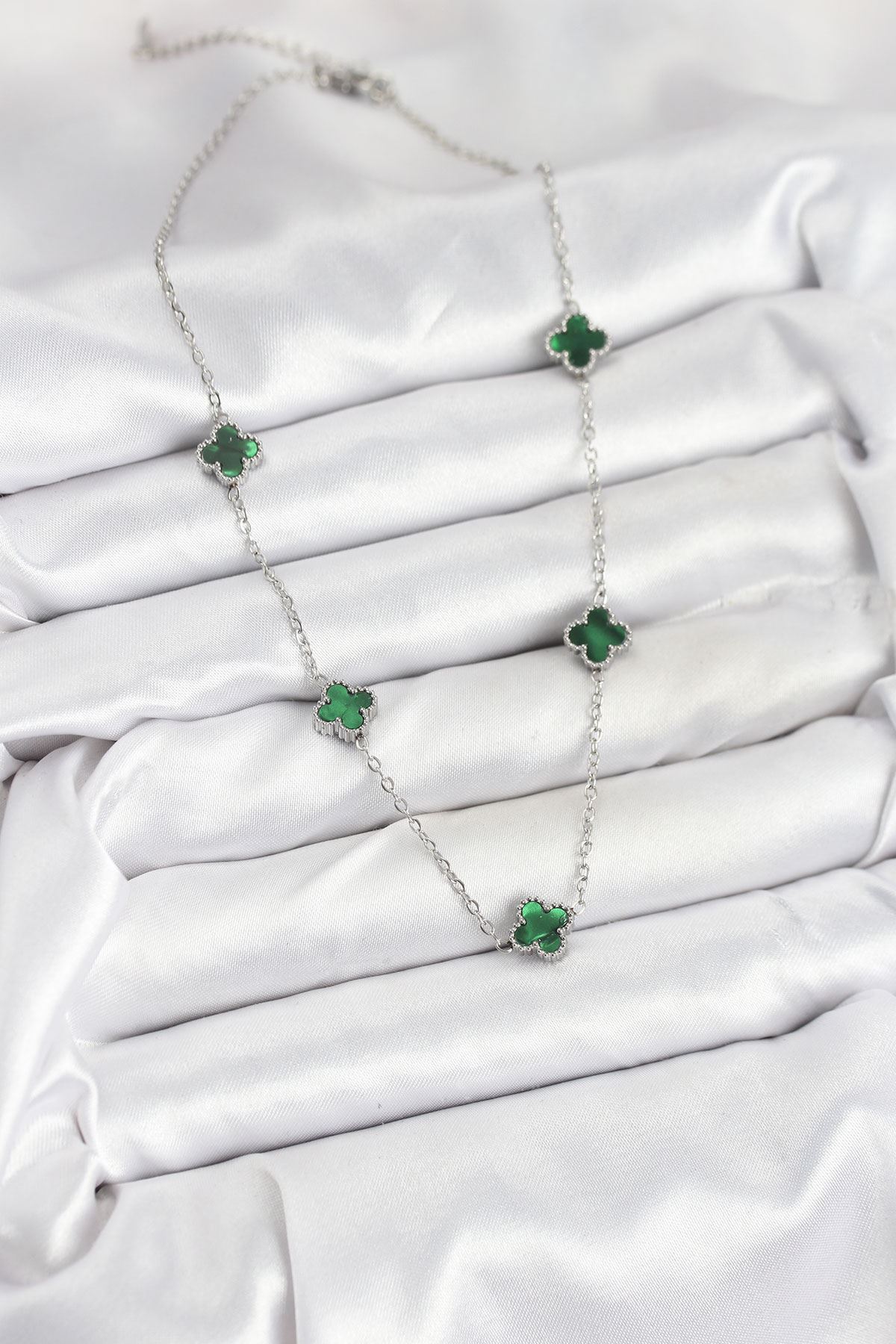 316L Çelik Zincir Gümüş Renk Yeşil Baby Boy Yonca Kadın Kolye - TJ-BKO10578