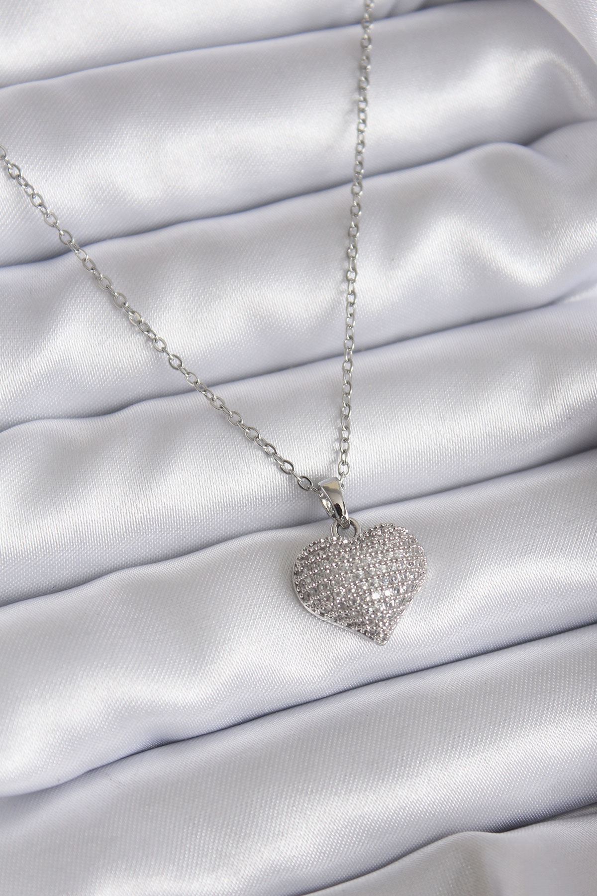316L Çelik Zincir Gümüş Renk Zirkon Taş Detay Kalp Model Kadın Kolye - TJ-BKO7811