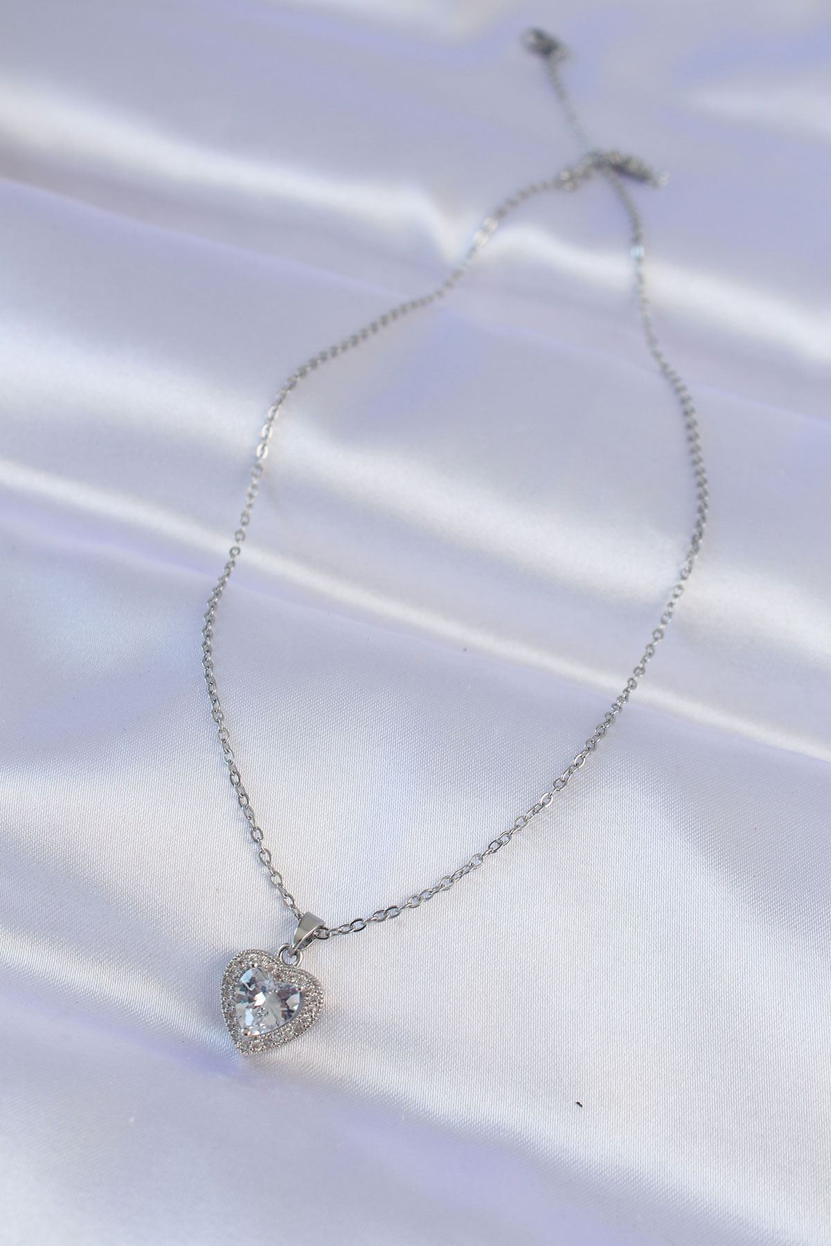 316L Çelik Zincir Gümüş Renk Zirkon Taşlı Charm Kalp Kolye - TJ-BKO8744