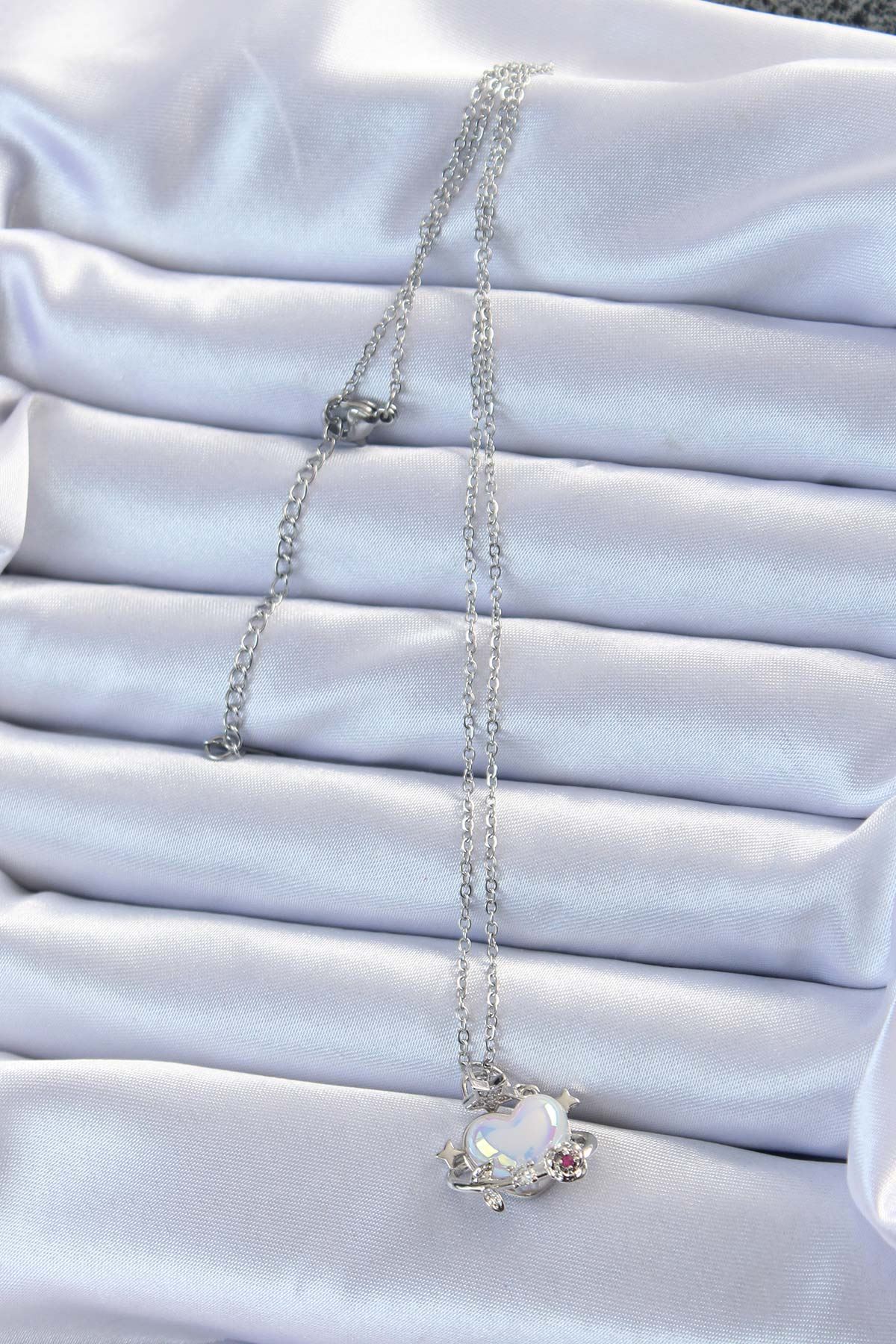 316L Çelik Zincir Gümüş Renk Zirkon Taşlı Gezegen Görünümlü Kalp Kolye - TJ-BKO9218