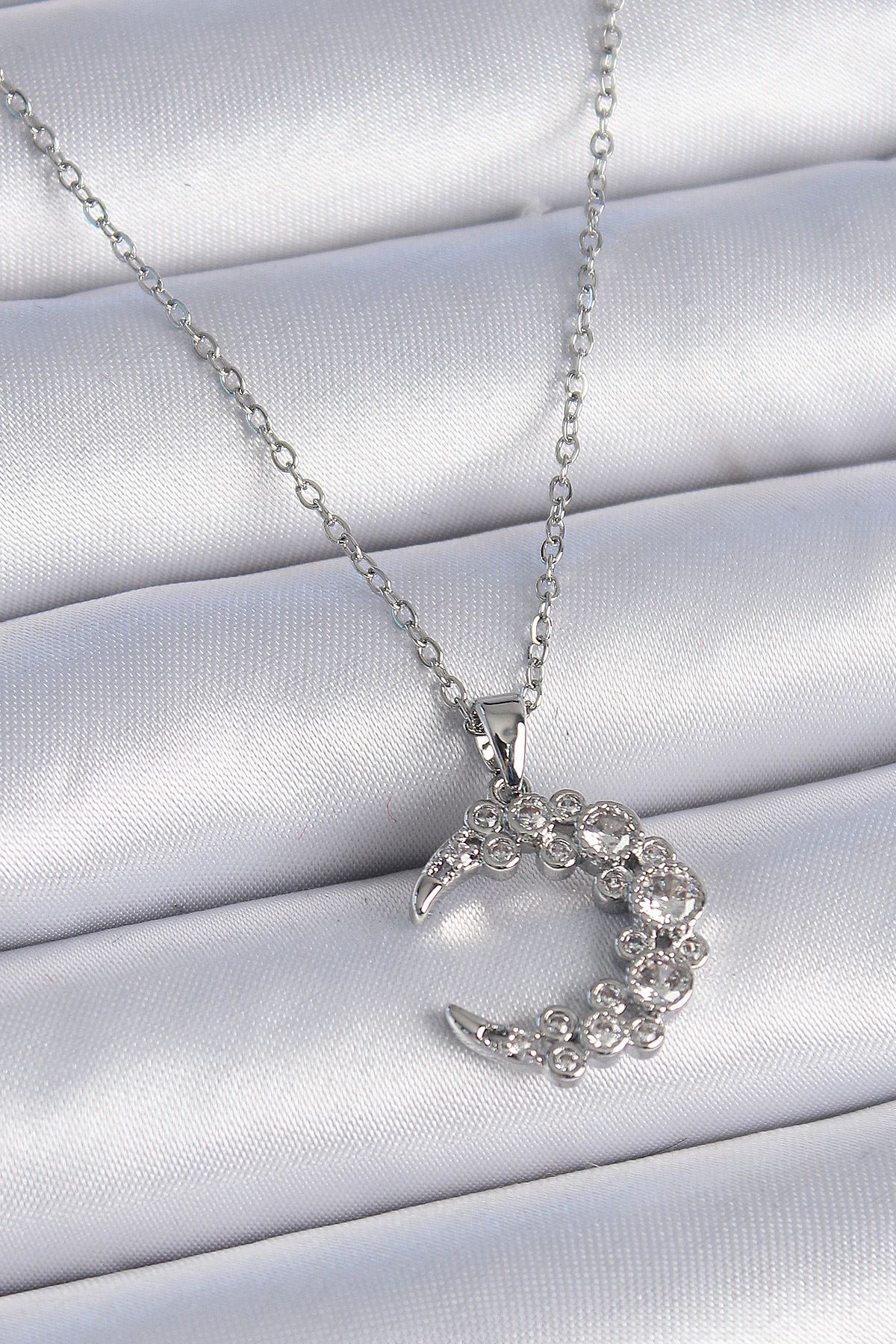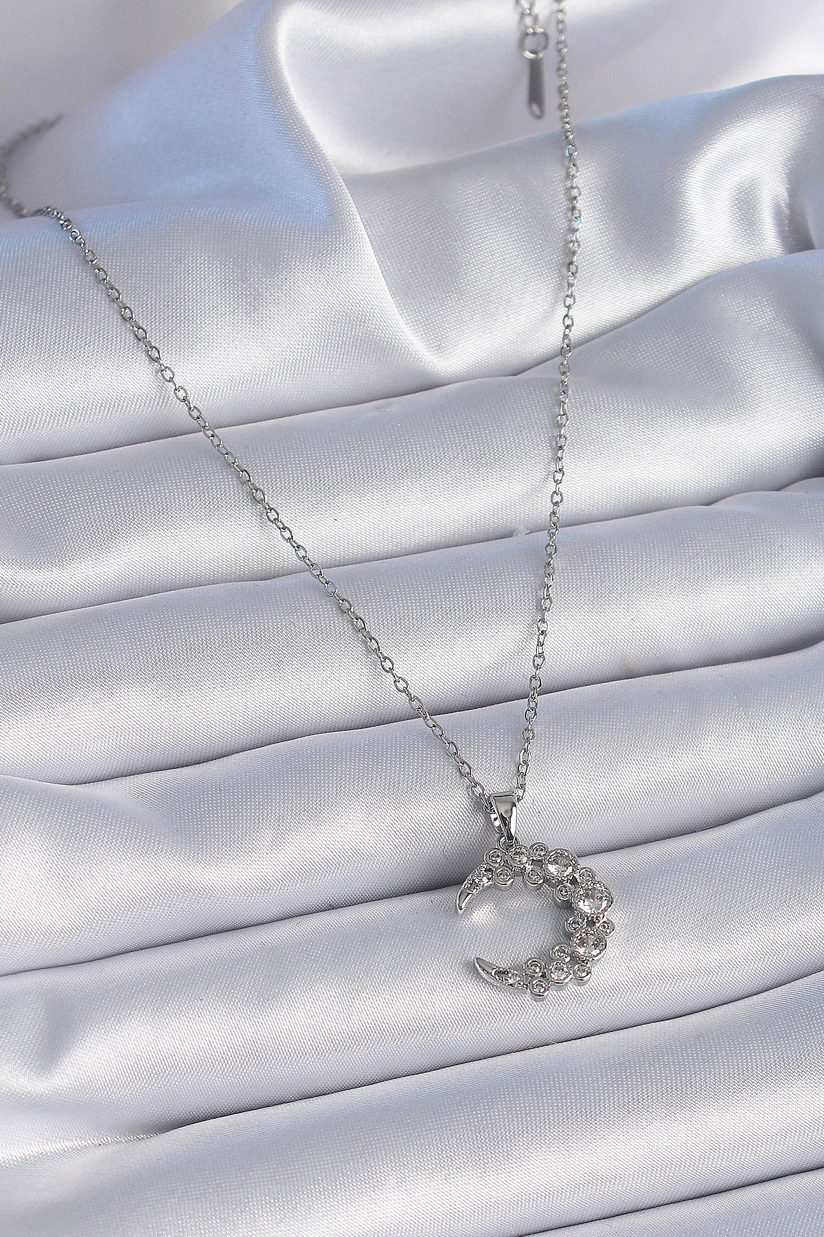 316L Çelik Zincir Gümüş Renk Zirkon Taşlı Hilal Model Kadın Kolye - TJ-BKO9355
