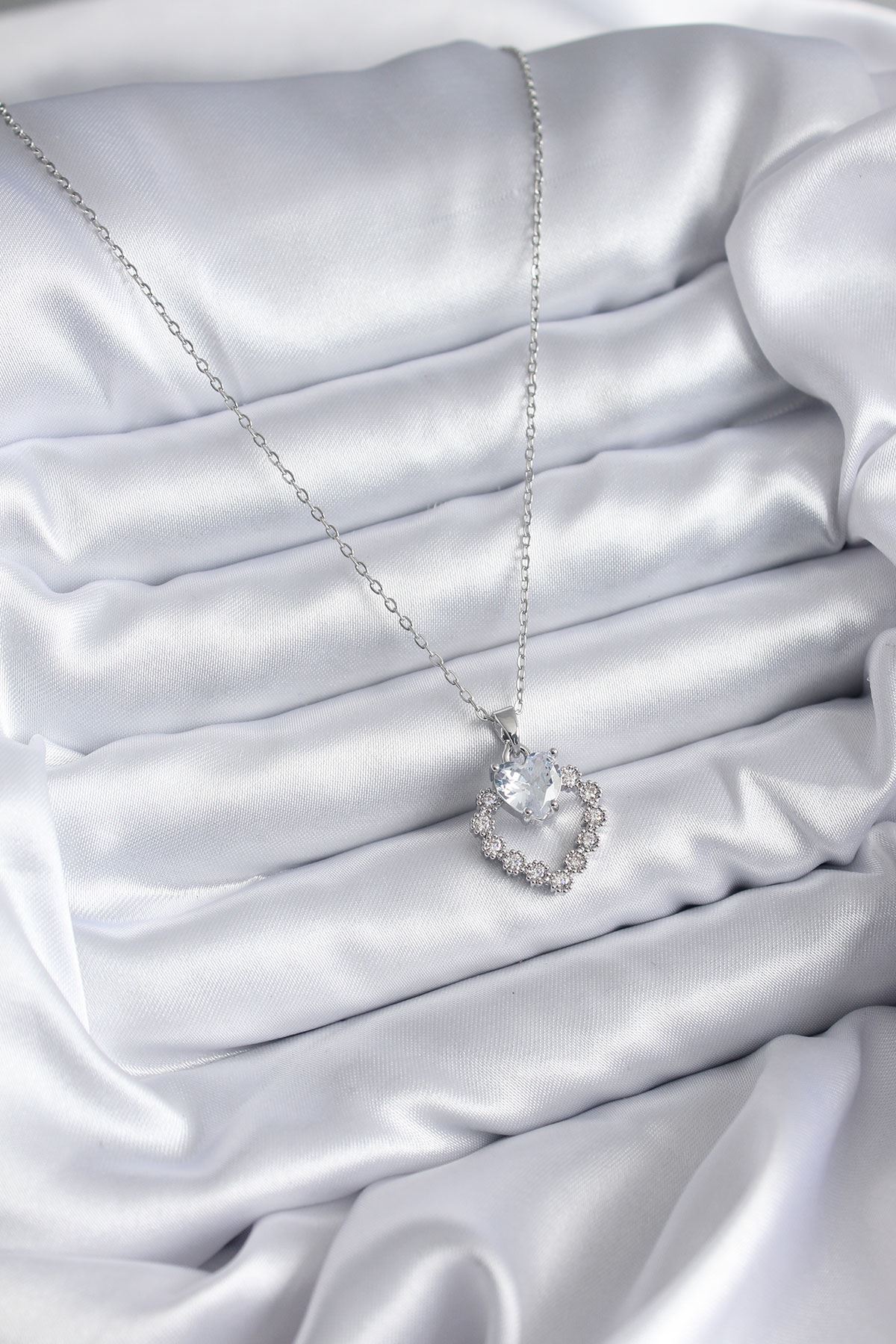 316L Çelik Zincir Gümüş Renk Zirkon Taşlı Kalp Model Kadın Kolye - TJ-BKO7829