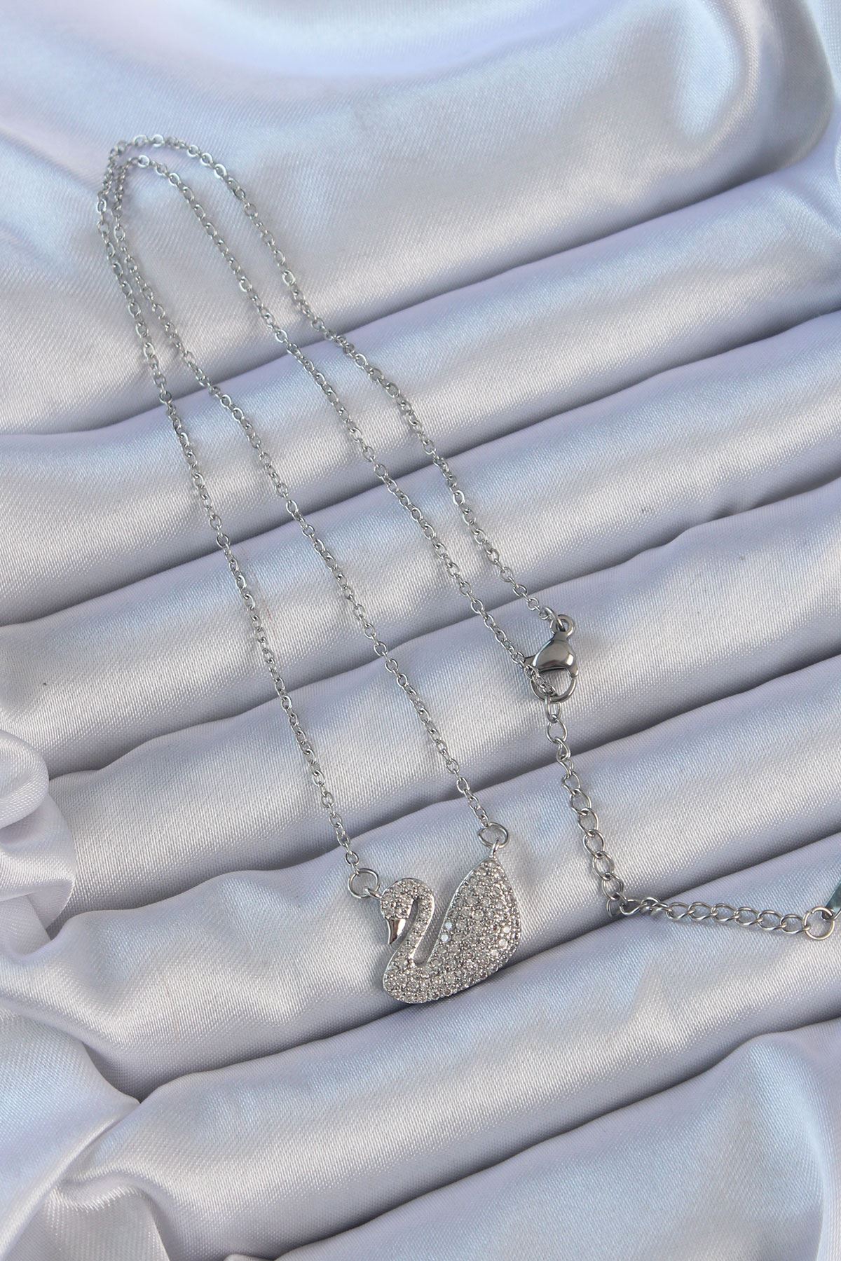 316L Çelik Zincir Gümüş Renk Zirkon Taşlı Kuğu Kolye - TJ-BKO9150