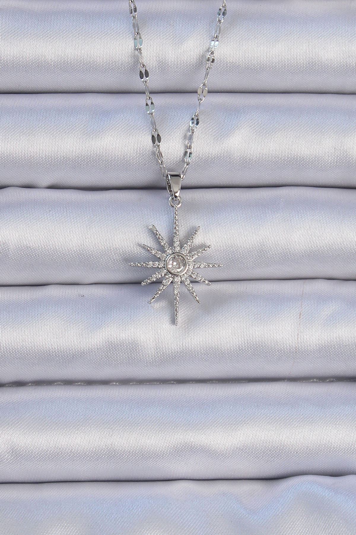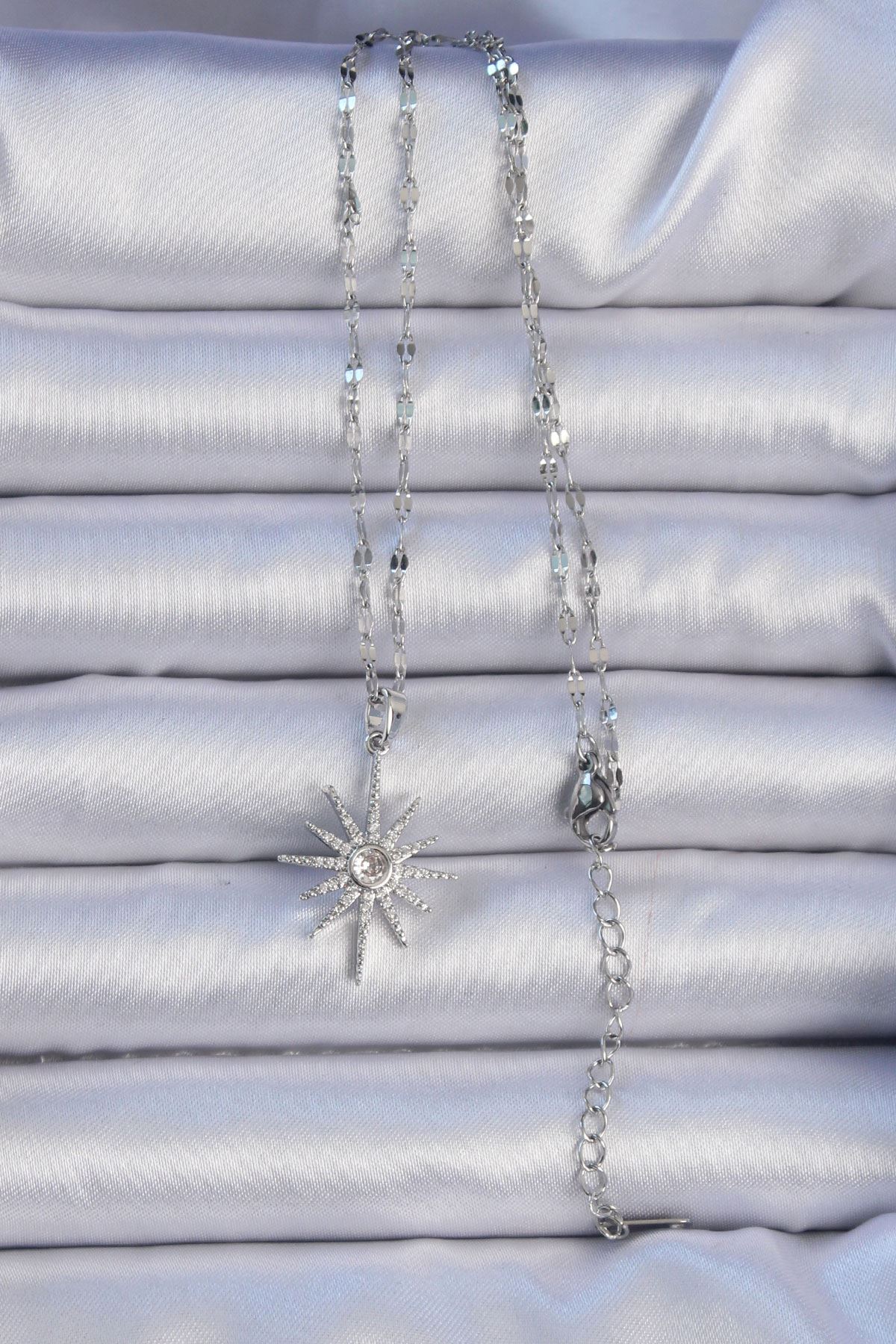 316L Çelik Zincir Gümüş Renk Zirkon Taşlı Kutup Yıldızı Kolye - TJ-BKO9064