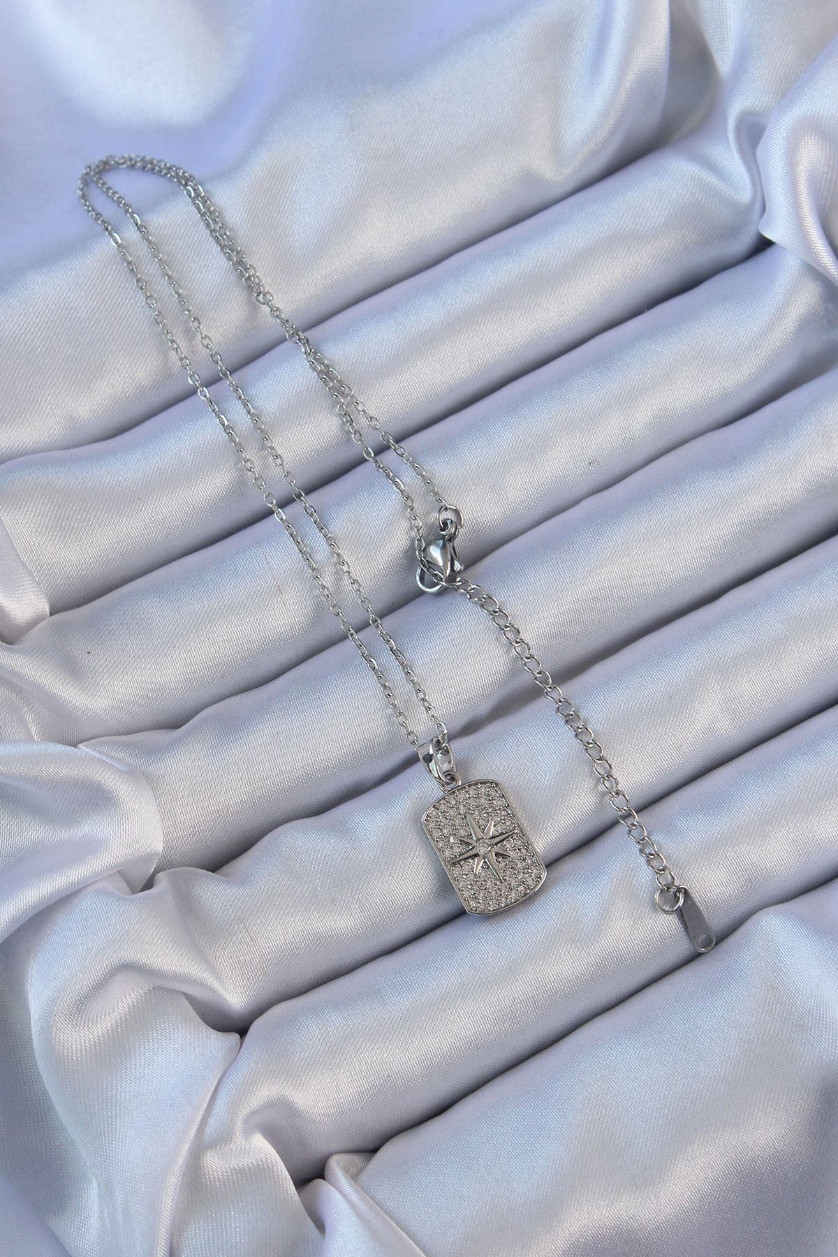 316L Çelik Zincir Gümüş Renk Zirkon Taşlı Kutup Yıldızlı Vintage Kolye - TJ-BKO9124