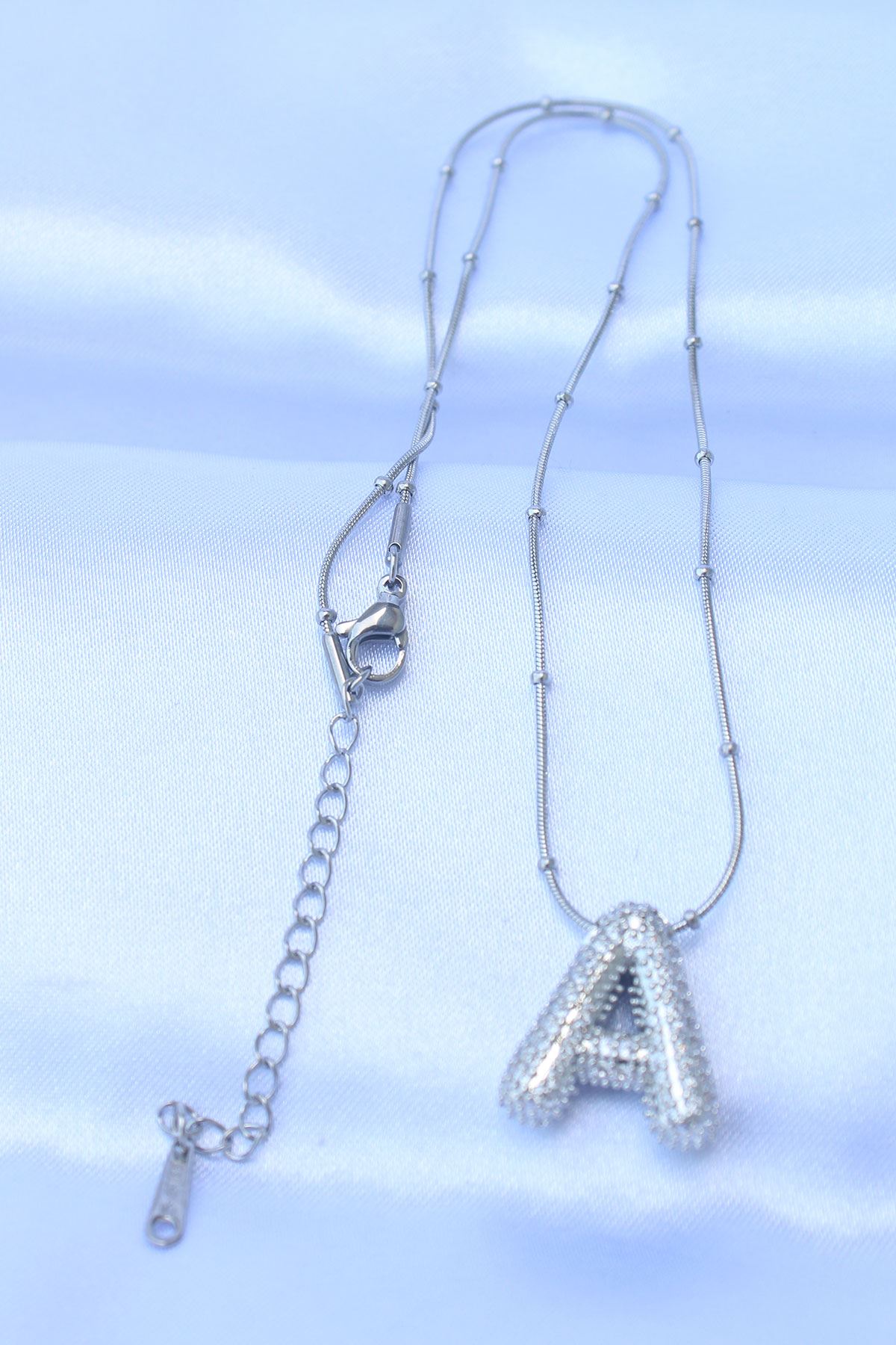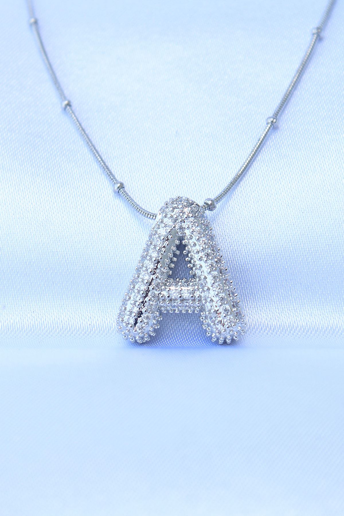 316L Çelik Zincirli Zirkon Taşlı A Harfli Gümüş Renk Bubble Kolye - TJ-BKO8729
