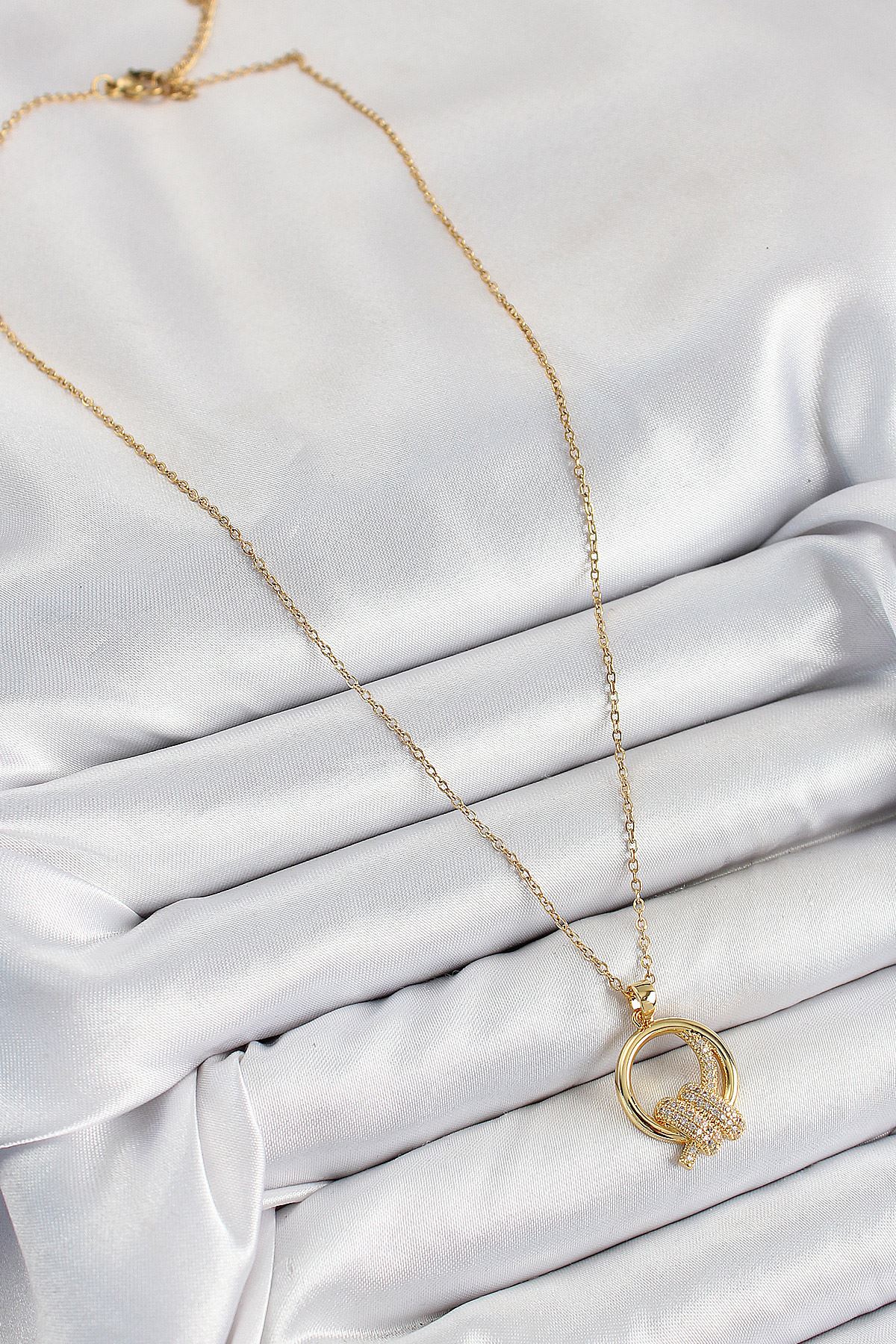 316L Çelik Zirkon Taşlı Düğüm Model Gold Renk Kadın Kolye - TJ-BKO10349
