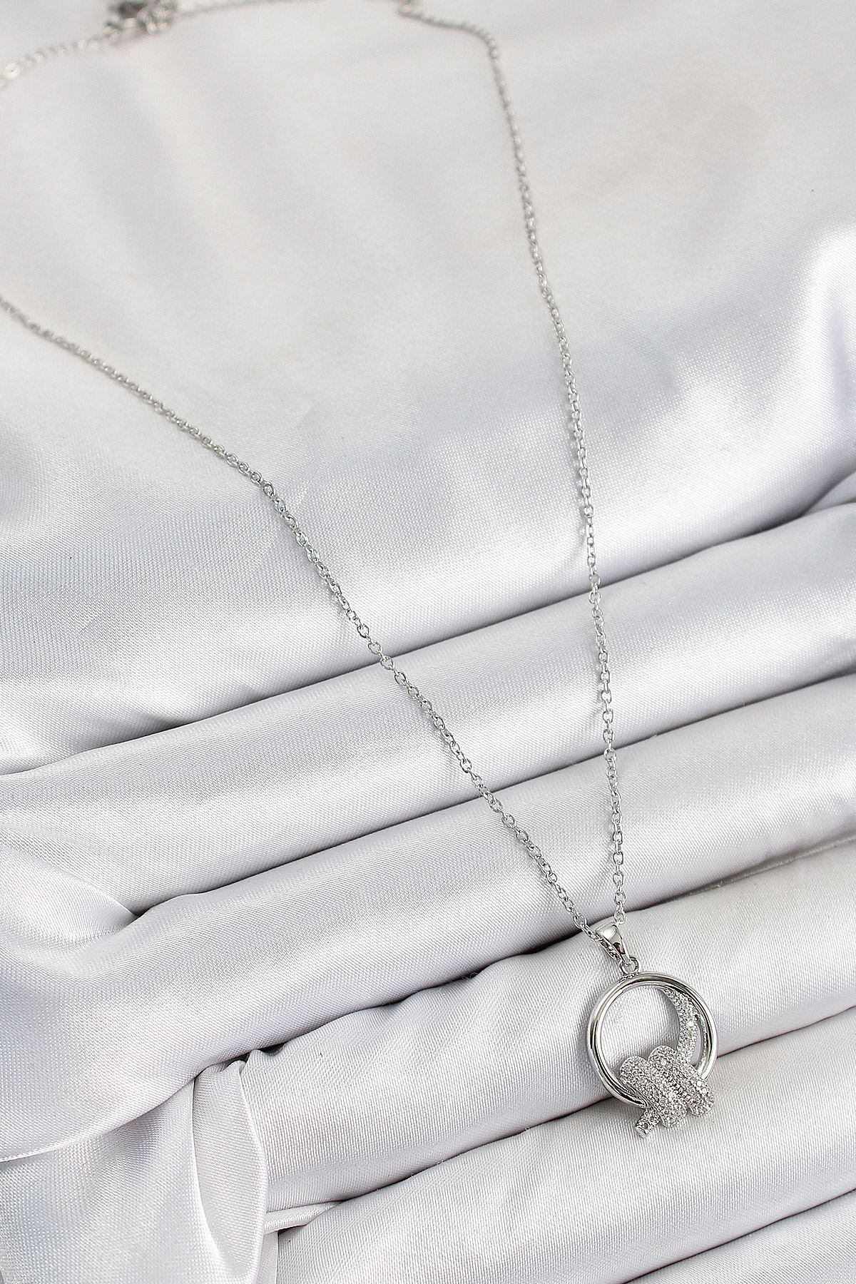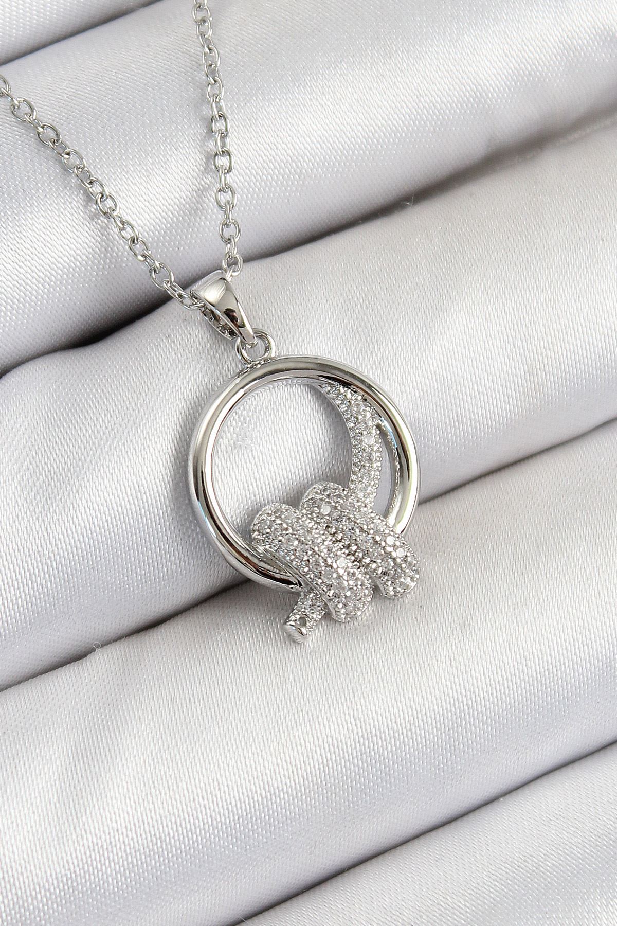 316L Çelik Zirkon Taşlı Düğüm Model Gümüş Renk Kadın Kolye - TJ-BKO10350