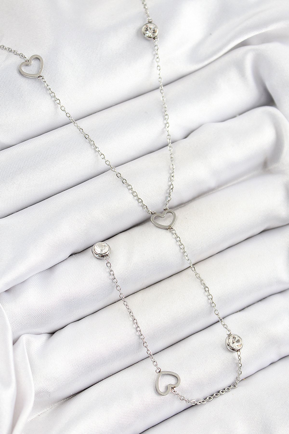 316L Çelik Zirkon Taşlı Kalp Figürlü Y Model Gümüş Renk Kadın Kolye - TJ-BKO10334