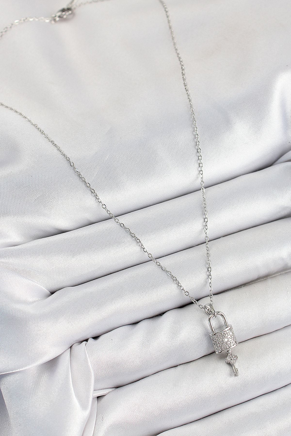 316L Çelik Zirkon Taşlı Kilit Ve Sallantılı Anahtar Model Gümüş Renk Kadın Kolye - TJ-BKO10354