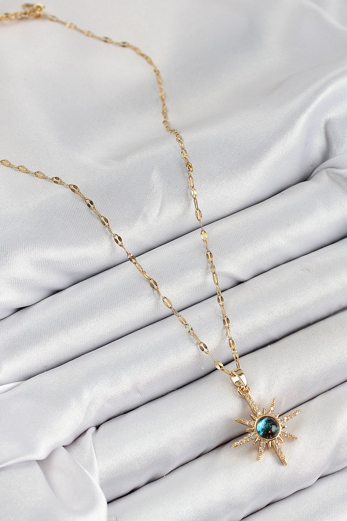 316L Çelik Zirkon Taşlı Kutup Yıldızı Model Gold Renk Kadın Kolye - TJ-BKO10444